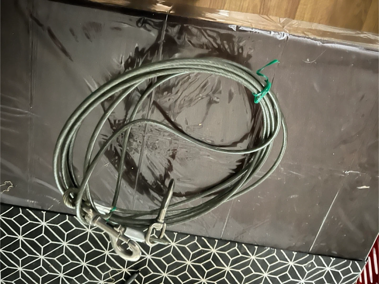 Selling a cable tie out for dogs. It's in great condition and ready to use for your furry friend