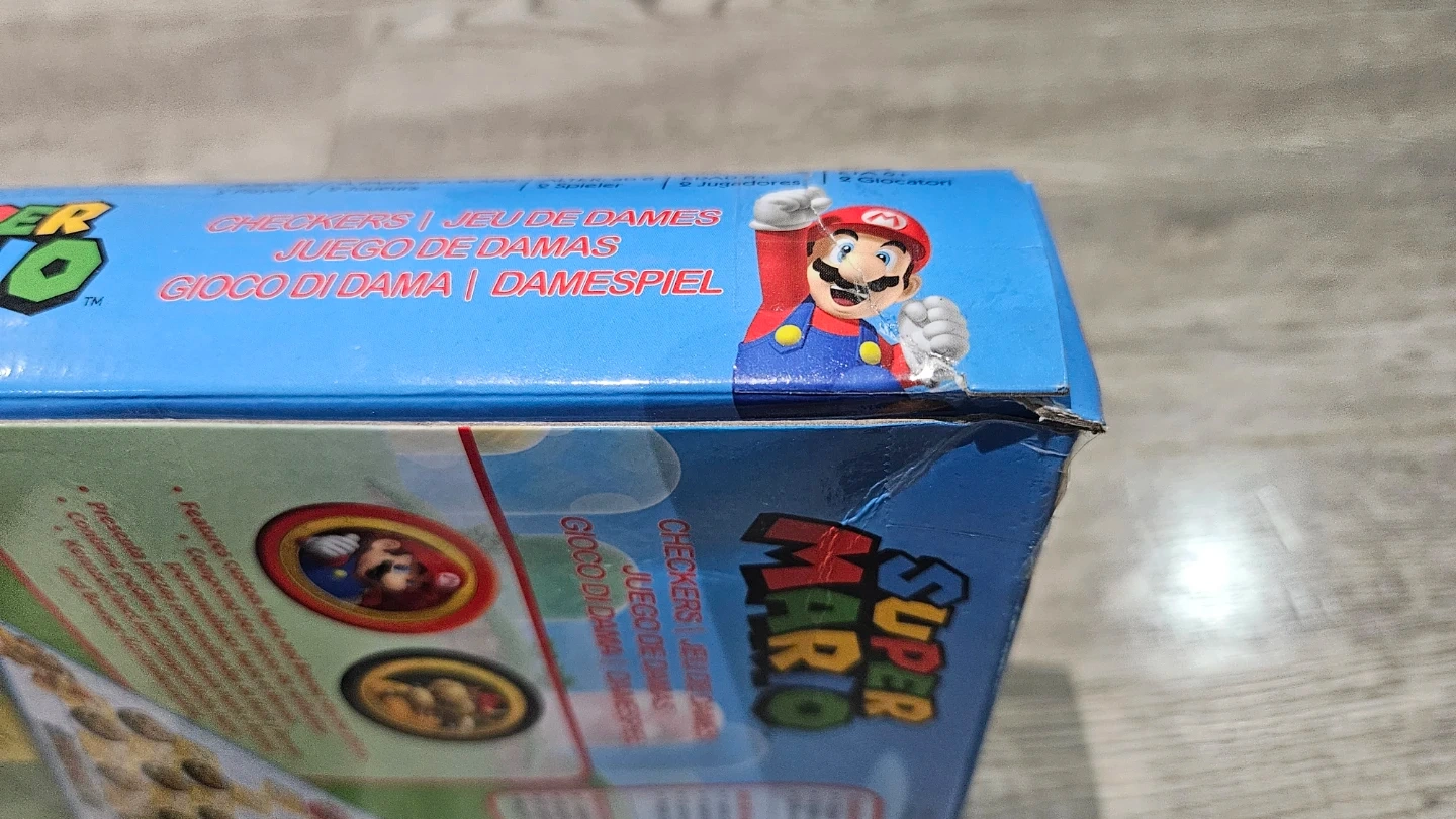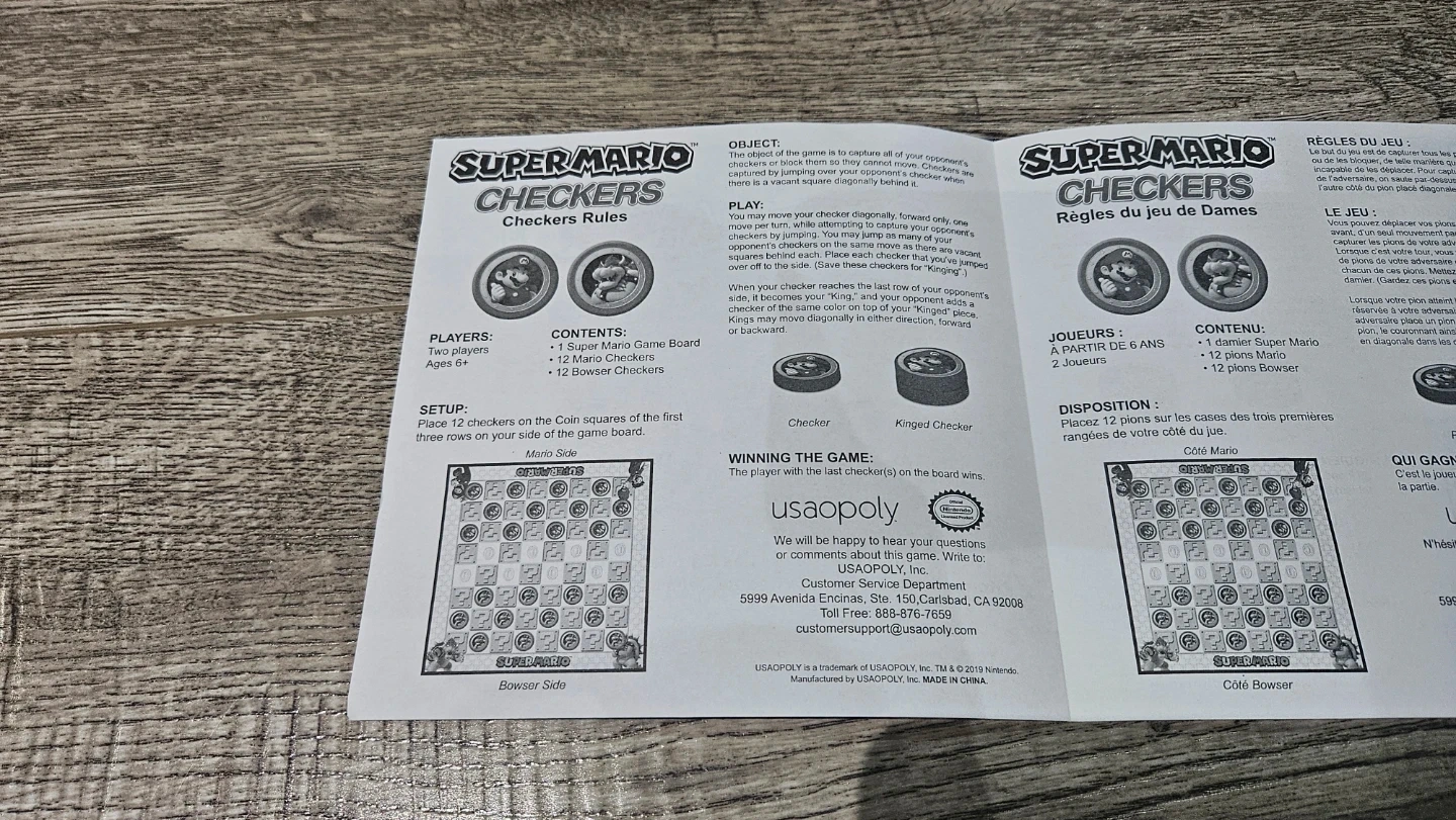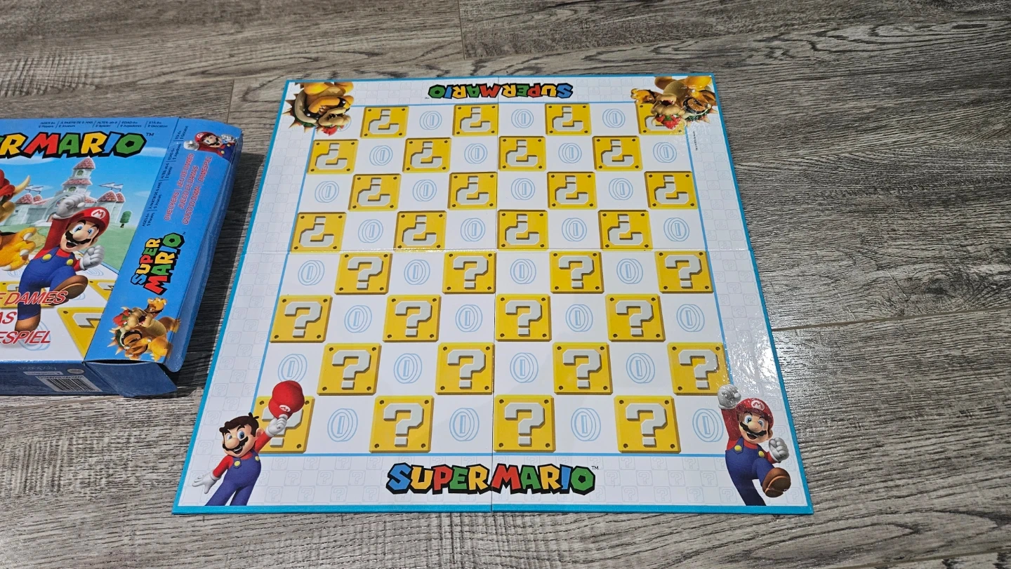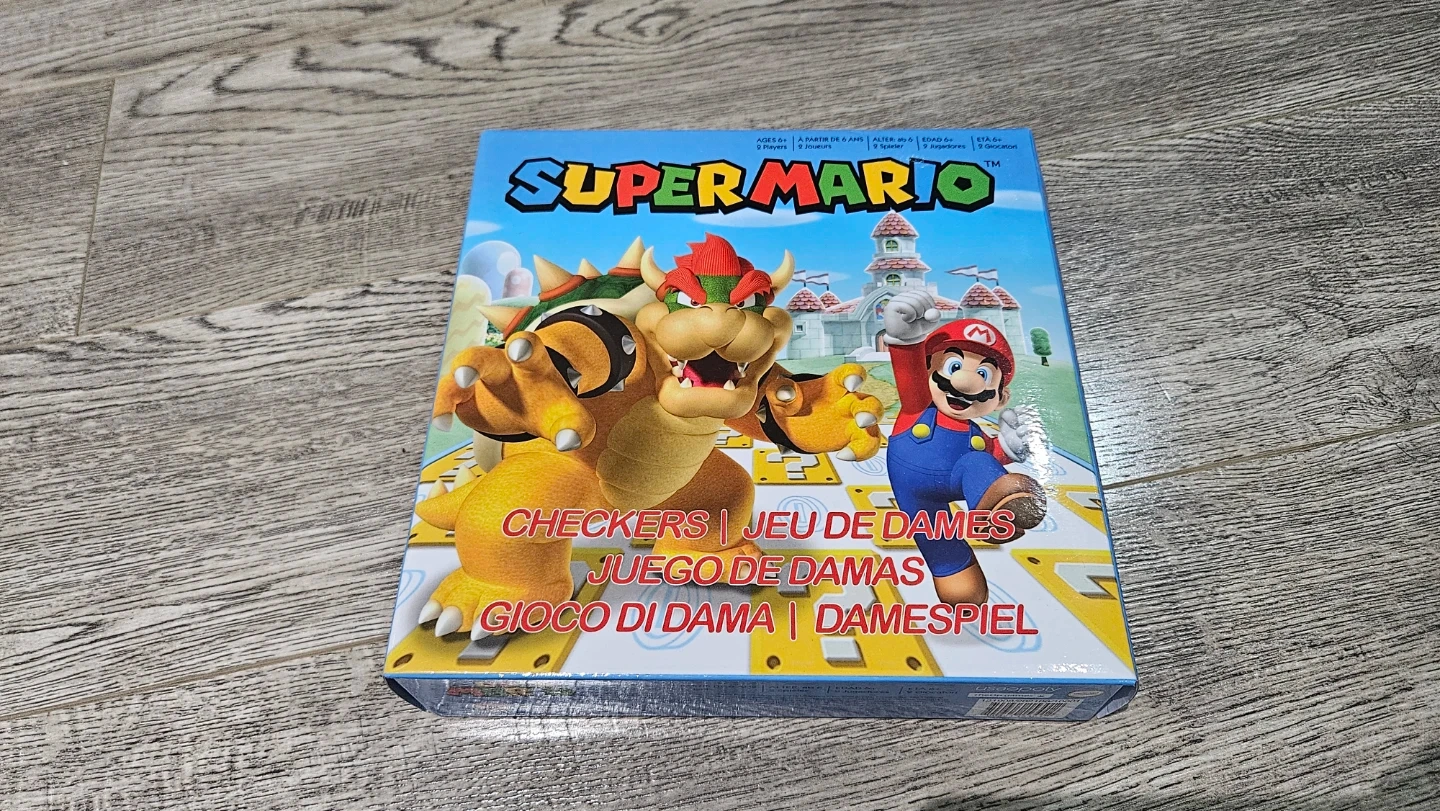 This is the Super Mario Checkers game for kids. It includes the game board and checker pieces and instructions. It's great for two players looking for some fun.