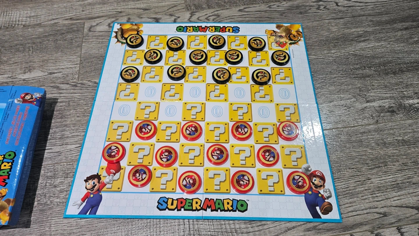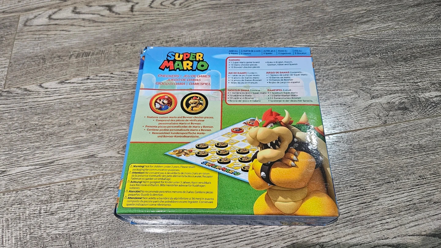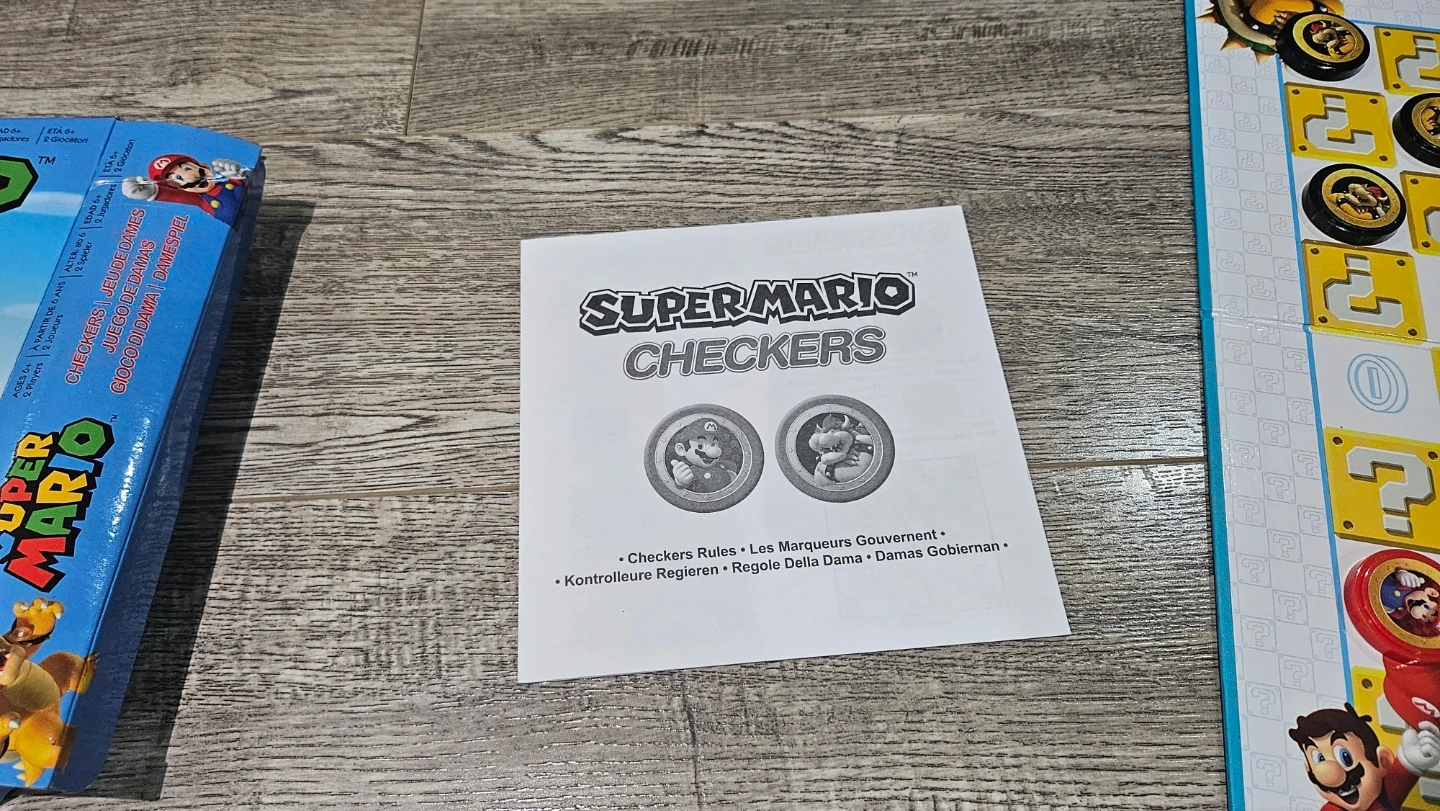 This is the Super Mario Checkers game for kids. It includes the game board and checker pieces and instructions. It's great for two players looking for some fun.
