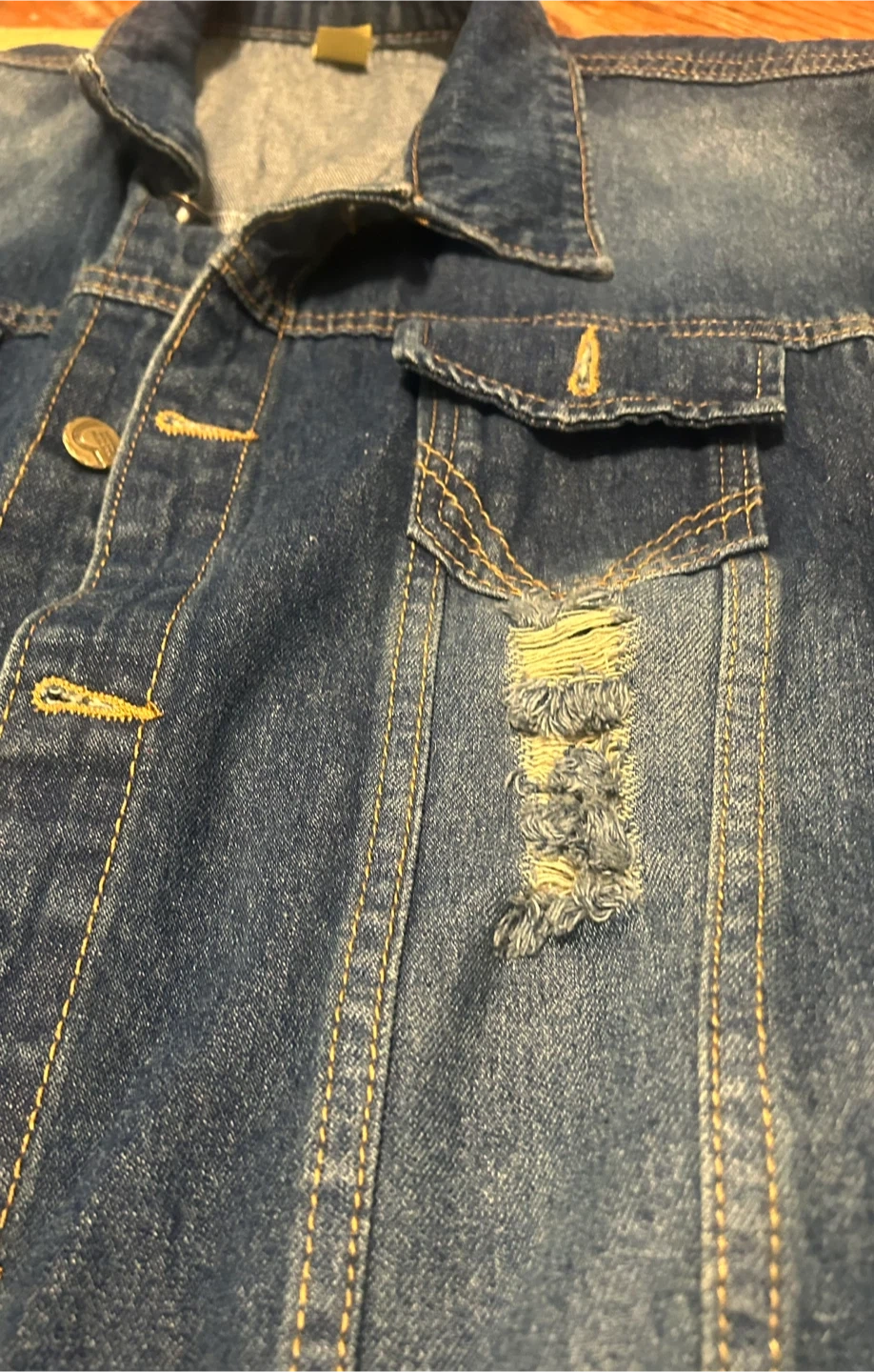 Buy & SellBlue Denim Vest - Distressed StyleBlue Denim Vest - Distressed Style$10This is a sleeveless blue denim vest with a distressed look. It features button-up closure and pocket details. Classic denim construction.ConditionLike newSize3 XL WHERE TO MEETCheck LocationView MapSELLERverifiedStaceyGreenfield18913 reviews0 chats·0 favorites·5 viewsSEND CHAT TO SELLERHi Stacey! I’m interested in your listing.Hi Stacey! I’m interested in your listing.Get the Karrot app to chatSign In to chat