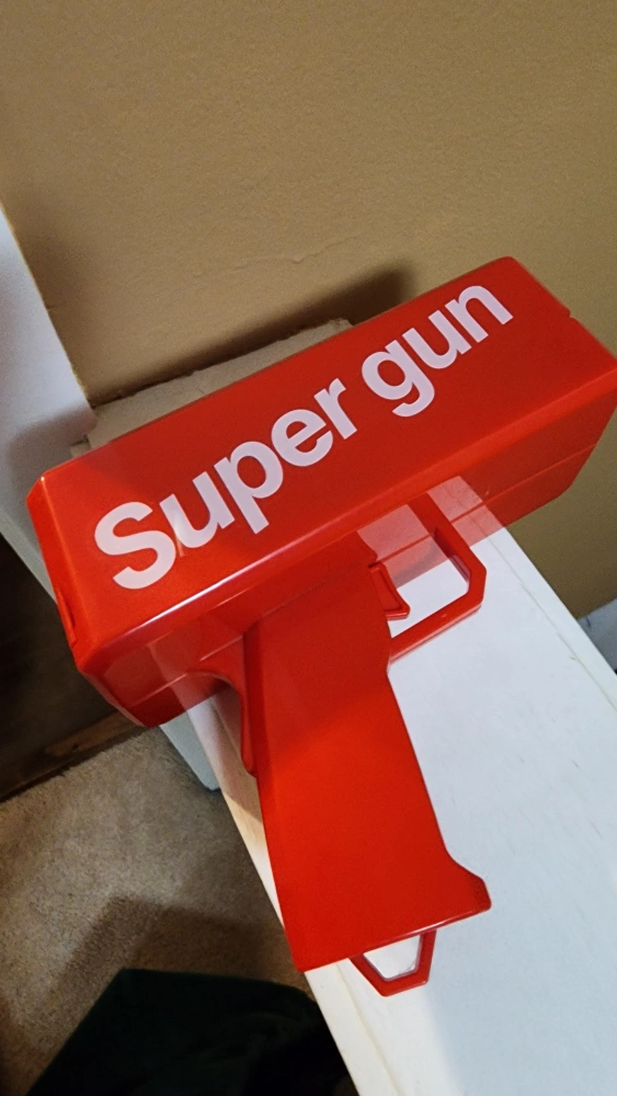 Selling a fun Super Gun money gun in red! It's in great shape and ready to make it rain. Perfect for parties, events, or just having a good time. Get ready to add some excitement to any occasion!