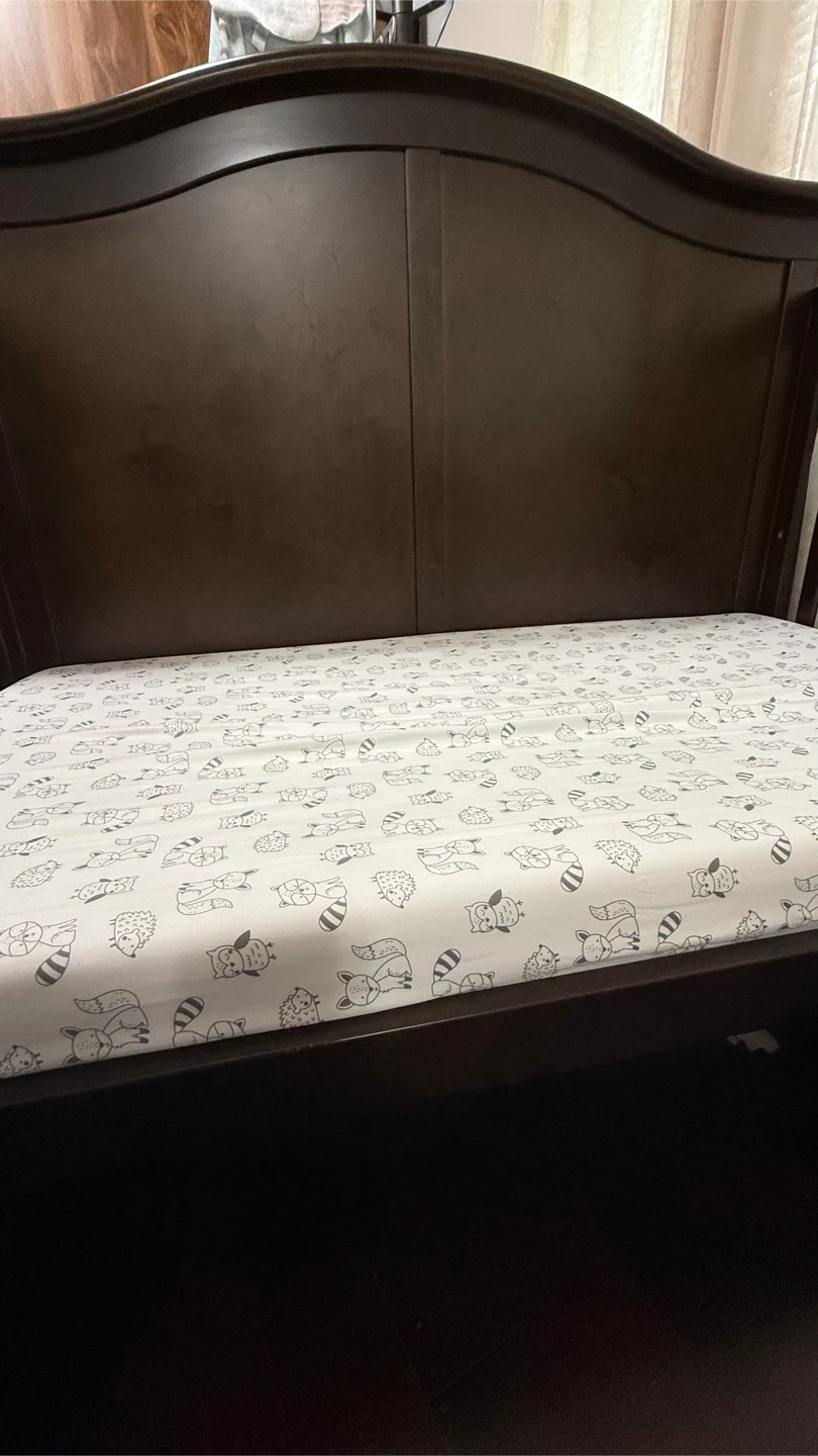 Free. A dark brown baby crib. It's in good condition and ready for a new home! The crib has a solid construction and a classic design that will fit well in any nursery. Perfect for your little one's peaceful sleep