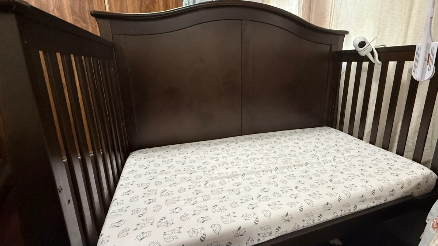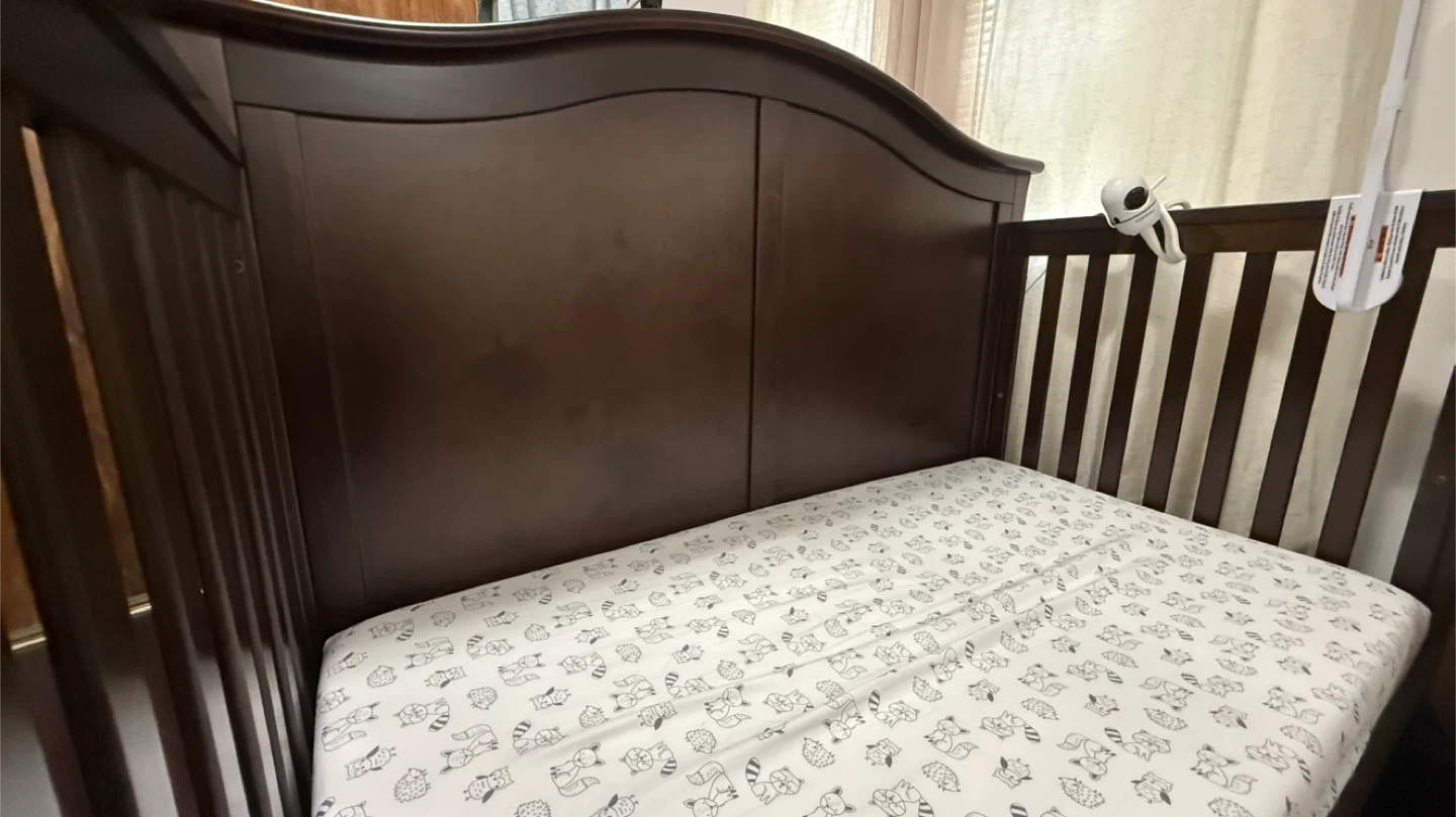 Free. A dark brown baby crib. It's in good condition and ready for a new home! The crib has a solid construction and a classic design that will fit well in any nursery. Perfect for your little one's peaceful sleep