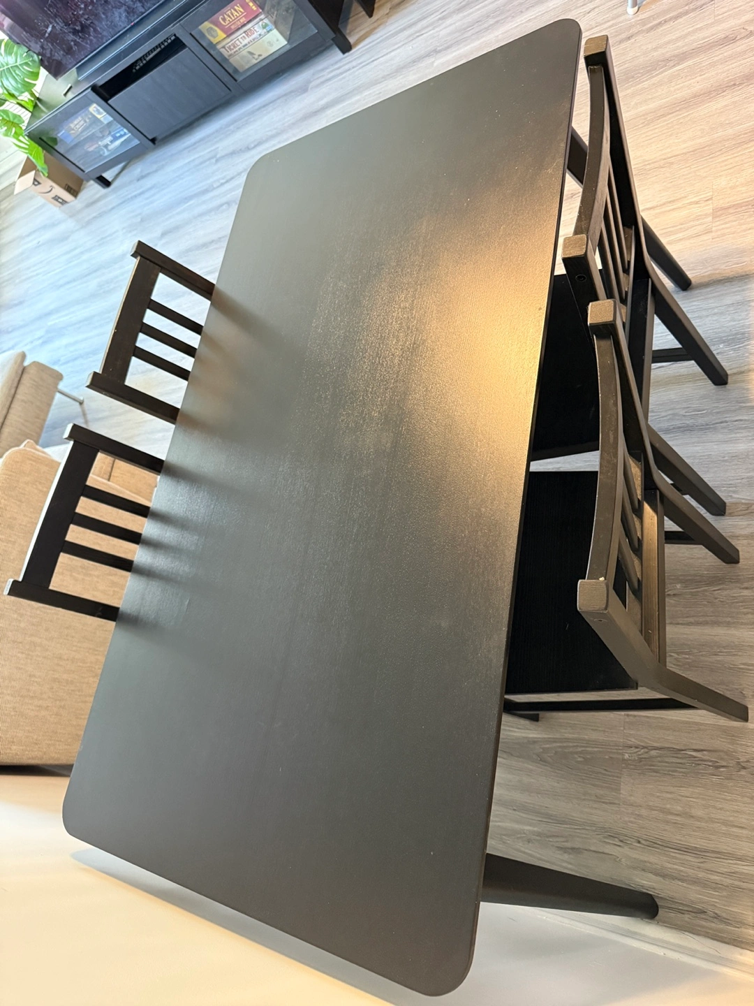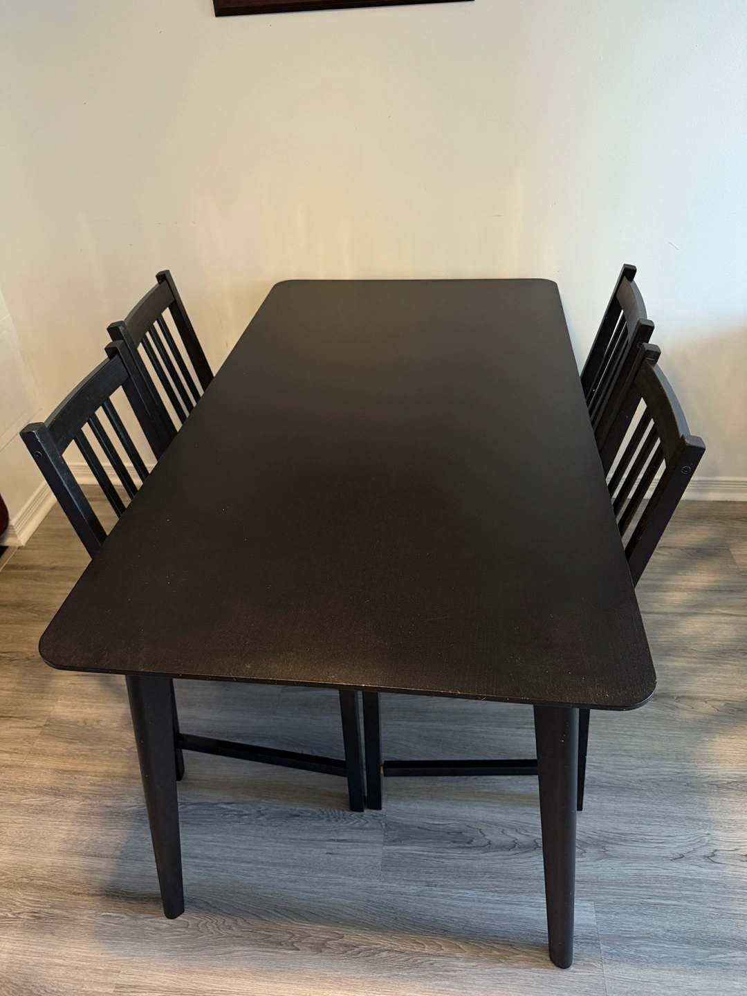 Selling a black dining table with four matching chairs! It's in great shape and ready for a new home. Perfect for small to medium spaces or cozy dining rooms