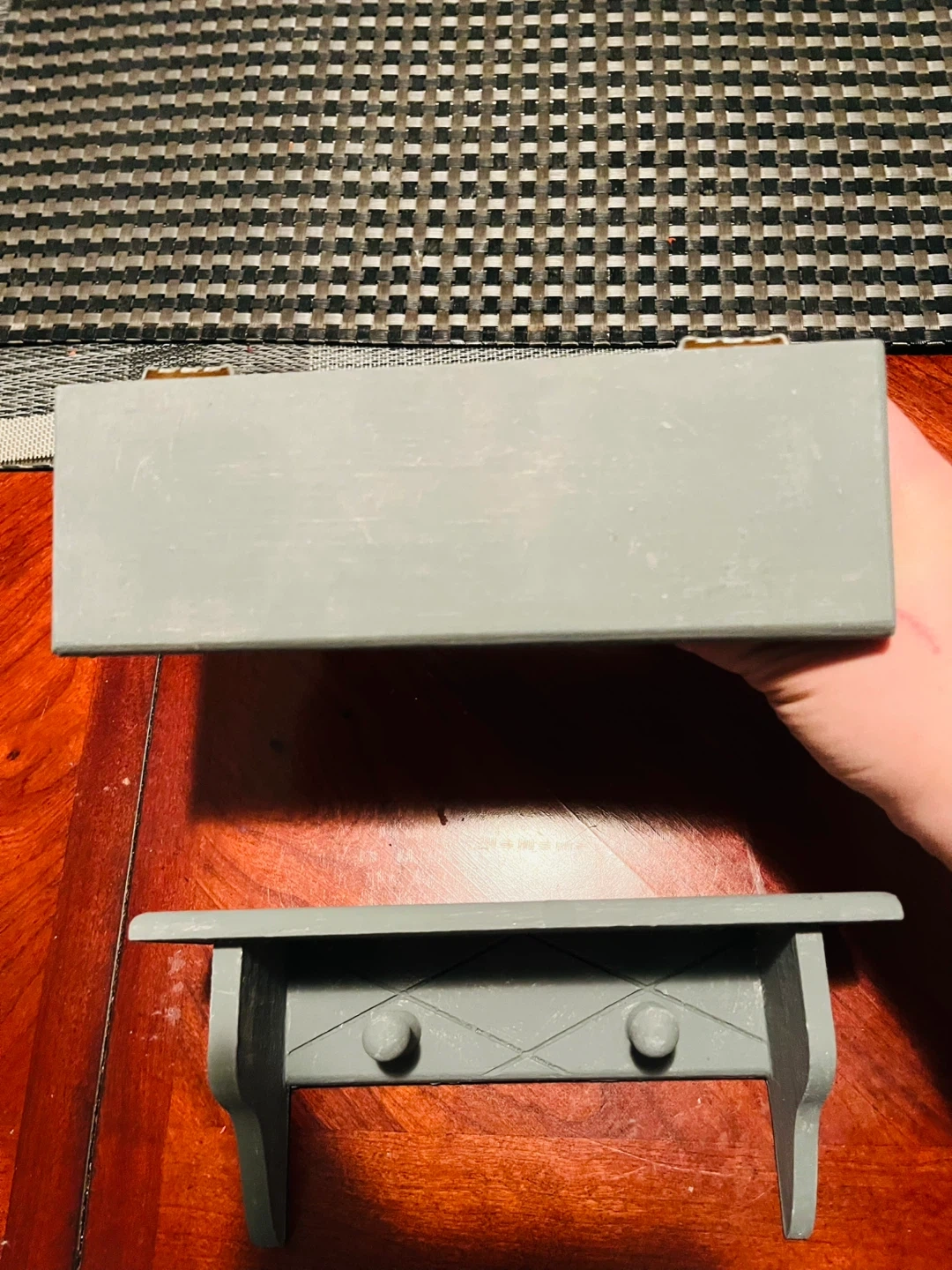 Decorative wooden shelves to hang on the wall. Can easily be repainted. Take both for $5 CAD firm. Measurements in pictures. Smoke Free Home.