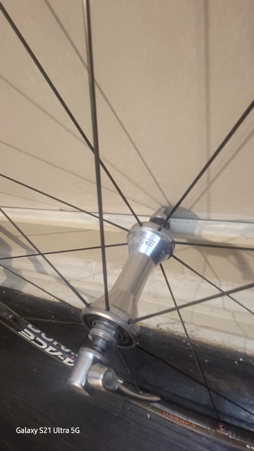 Tienes un juego de ruedas de alta gama con una rueda delantera DURA-ACE y una rueda trasera Boyd de 11 velocidades y 40 mm. El aro tubular de carbono de la rueda delantera es ligero y está optimizado para la velocidad. La rueda trasera Boyd ofrece una amplia gama de marchas gracias a su cassette de 11 velocidades, lo que la hace adecuada para diversos terrenos y estilos de ciclismo. En general, tu juego de ruedas parece estar diseñado para el rendimiento y la eficiencia.