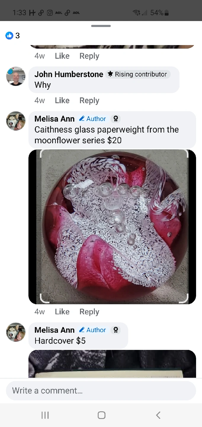 Selling a lovely Caithness glass paperweight from the Moonflower series! It's in great shape and would make a beautiful addition to any collection or a unique decorative piece for your home