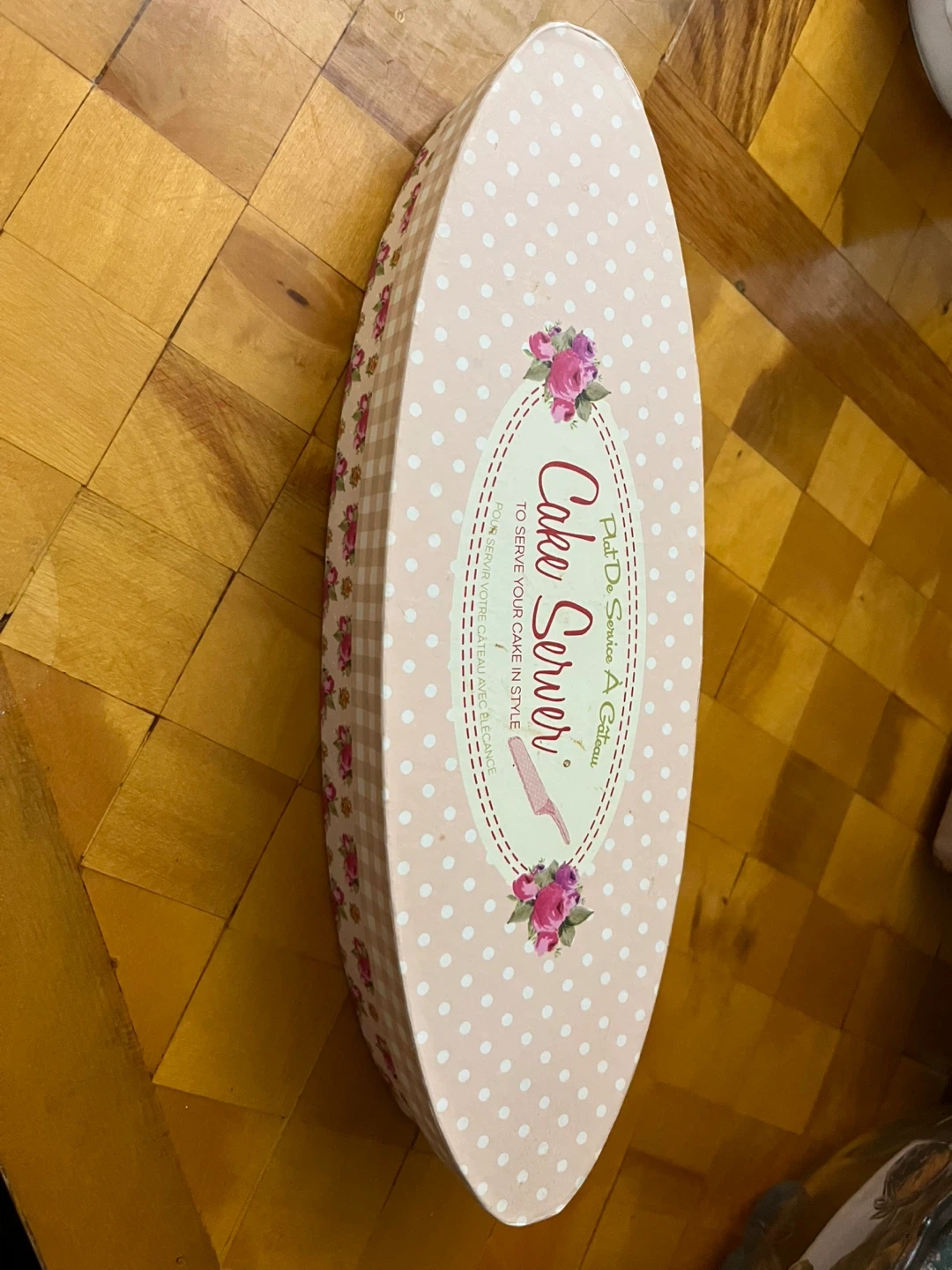Beautiful Ceramic Cake Server in pretty box storage container, like new.