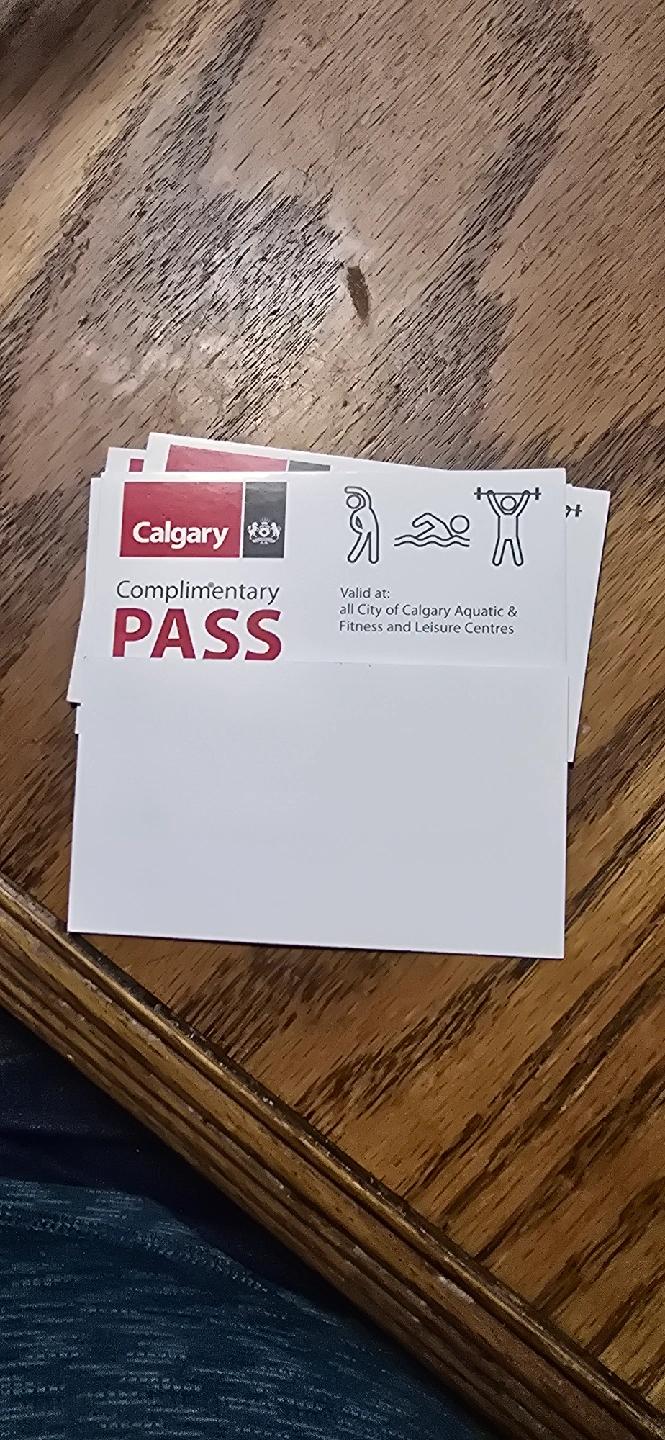 Selling a complimentary passs valid at all City of Calgary Aquatic & Fitness and Leisure Centres this is for 6 in total
