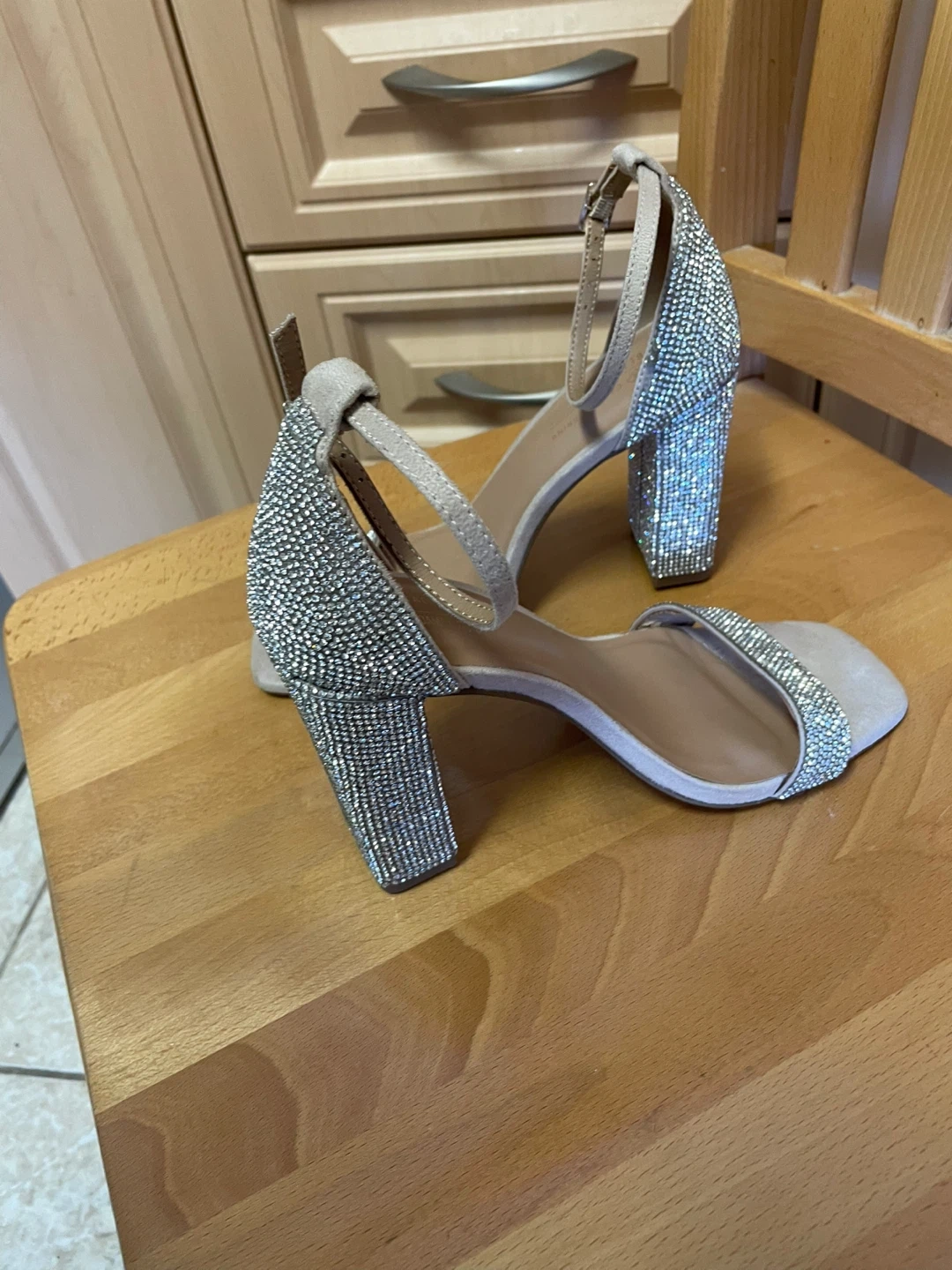 92These are a pair of Call It Spring heel sandals, perfect for a night out! They feature a sparkly rhinestone design and a comfortable block heel. Size 7