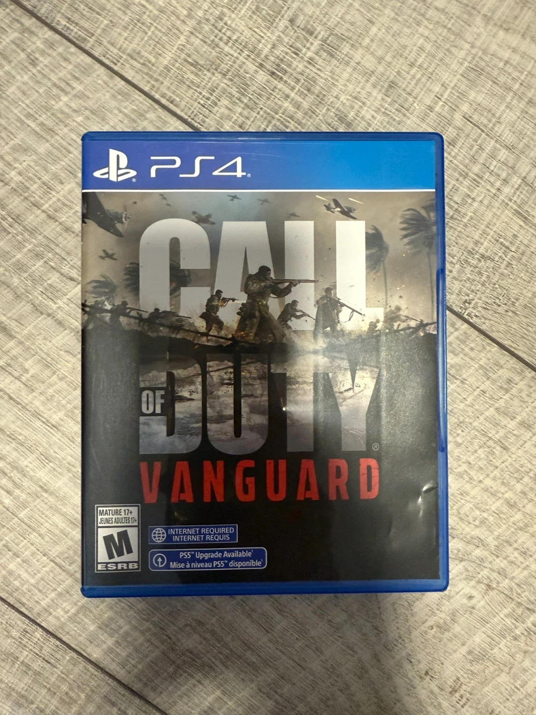 Selling Call of Duty: Vanguard for the PS4. It's rated M for Mature 17+ and requires internet. It also has a PS5 upgrade available