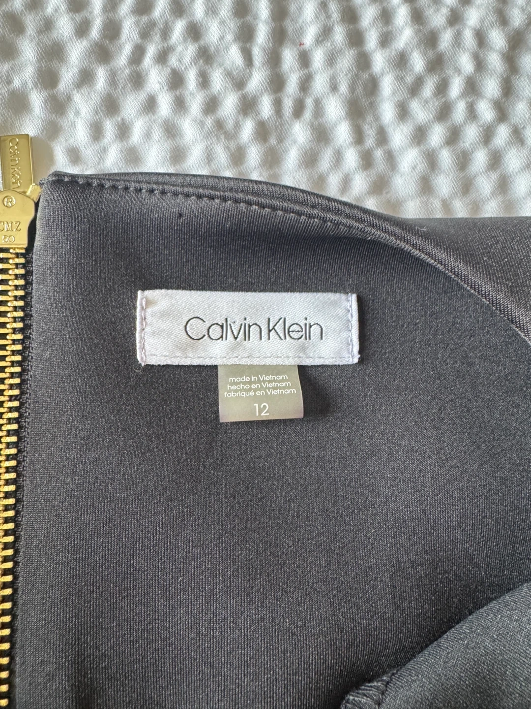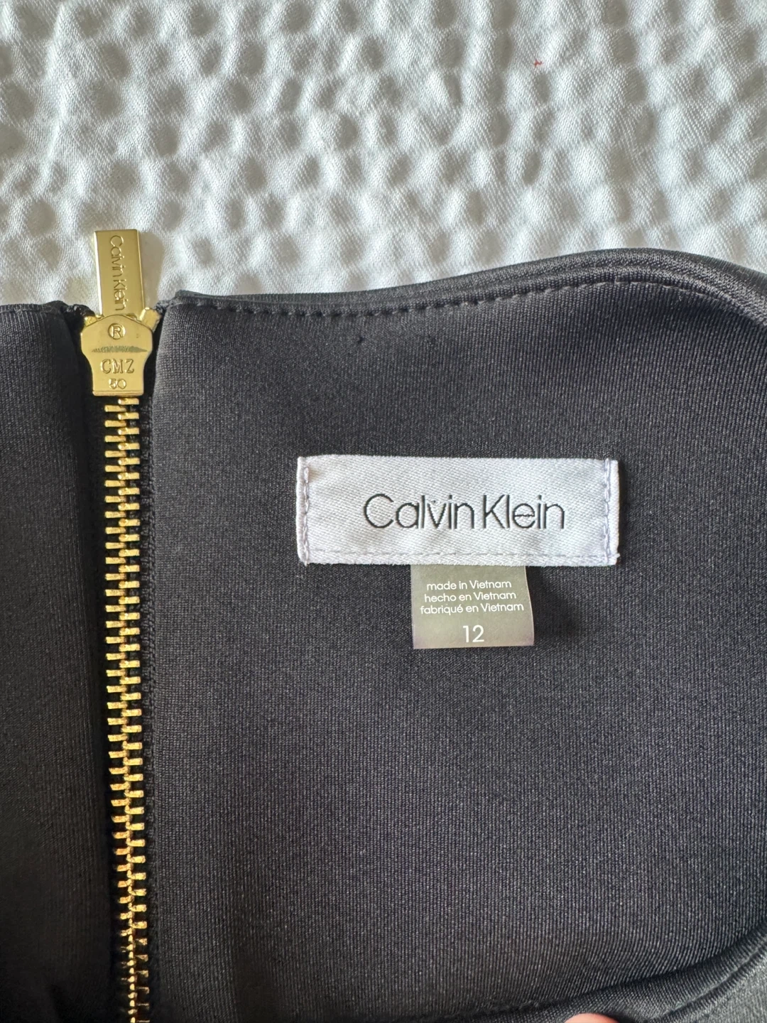 10Selling a Calvin Klein dress in black. It's a size 12 and in great condition. The dress has a gold zipper in the back. Perfect for any occasion!
