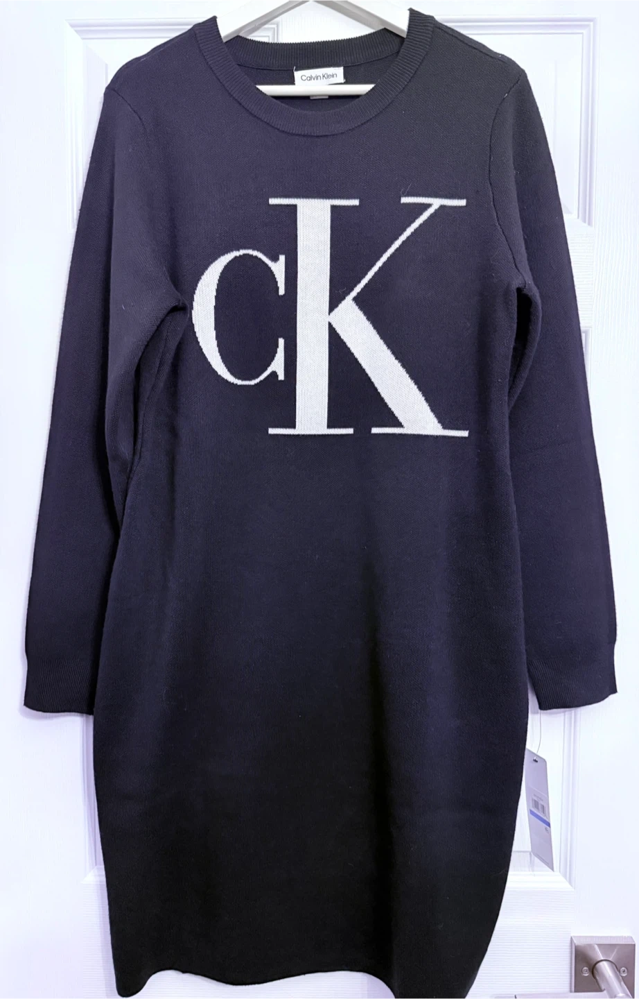 442Cozy up in this stylish Calvin Klein sweater dress! It's a size XL and features the iconic CK logo in white on the front. Perfect for a casual yet chic look. Ptp 23” Length 40” BNWT