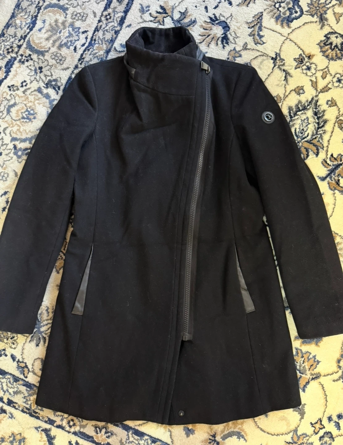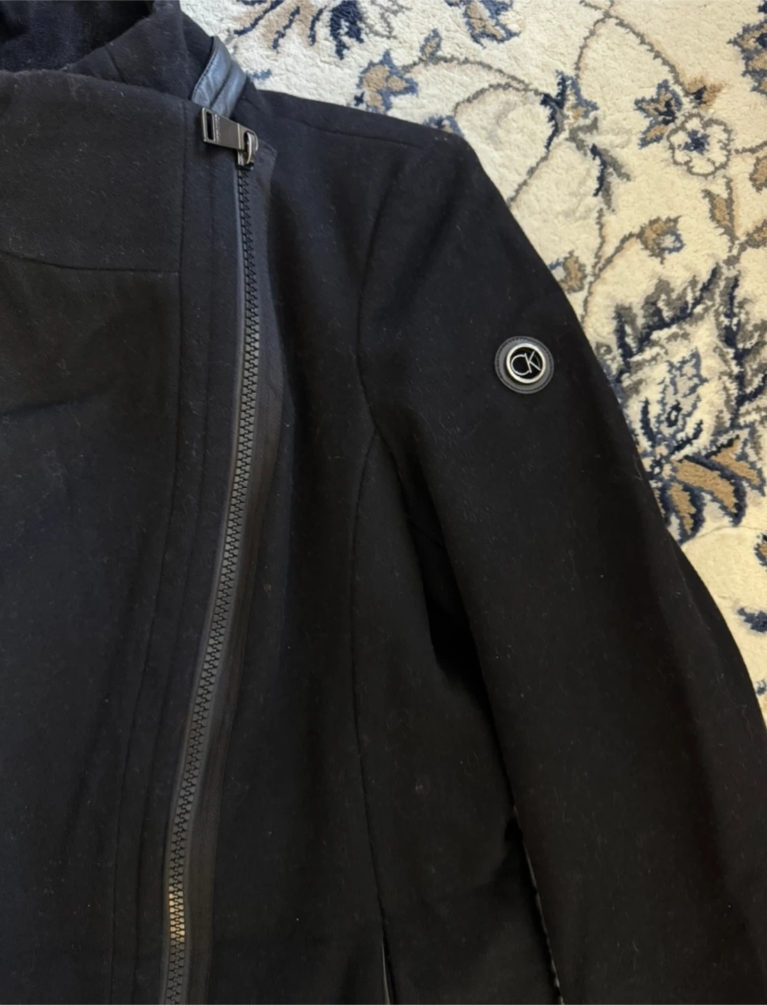Selling a Calvin Klein black wool blend coat. It's in great condition and perfect for the colder months! The coat features a stylish asymmetrical zipper and a comfortable lining. Small $20 Yonge and finch area