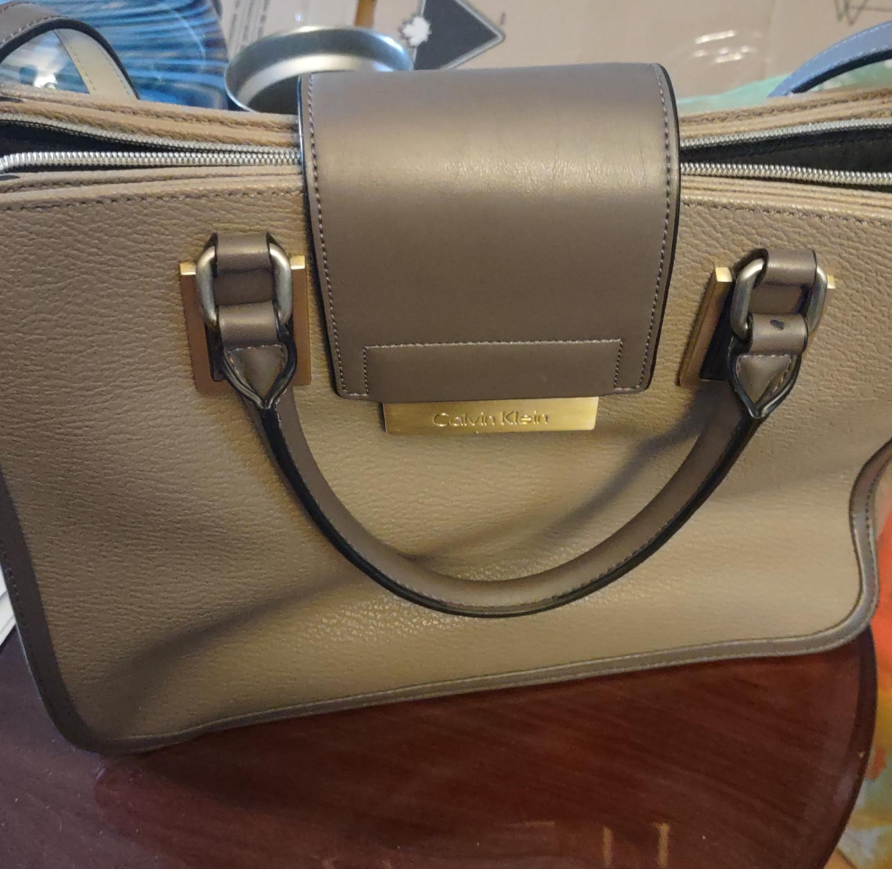 48Selling a Calvin Klein satchel handbag. It's in good condition and has a stylish, structured design. Perfect for everyday use or special occasions!