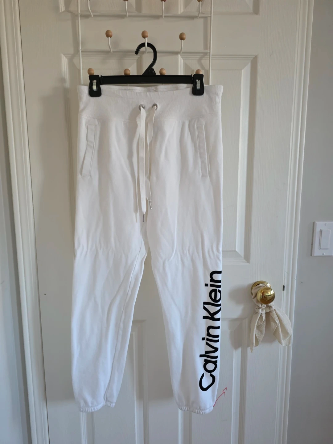 87These white Calvin Klein joggers are perfect for lounging around or running errands. They're in great condition and super comfy! The material is soft and breathable