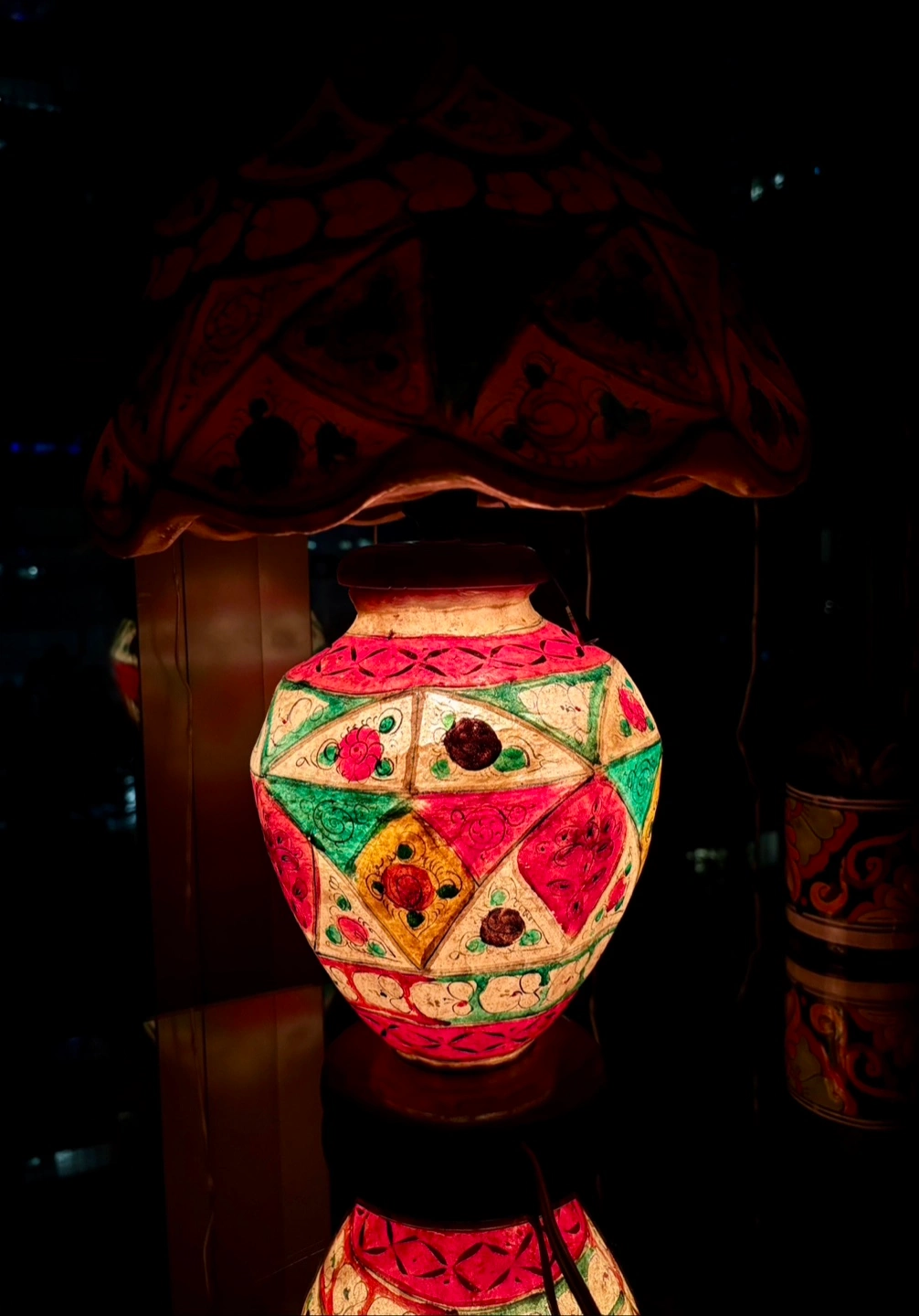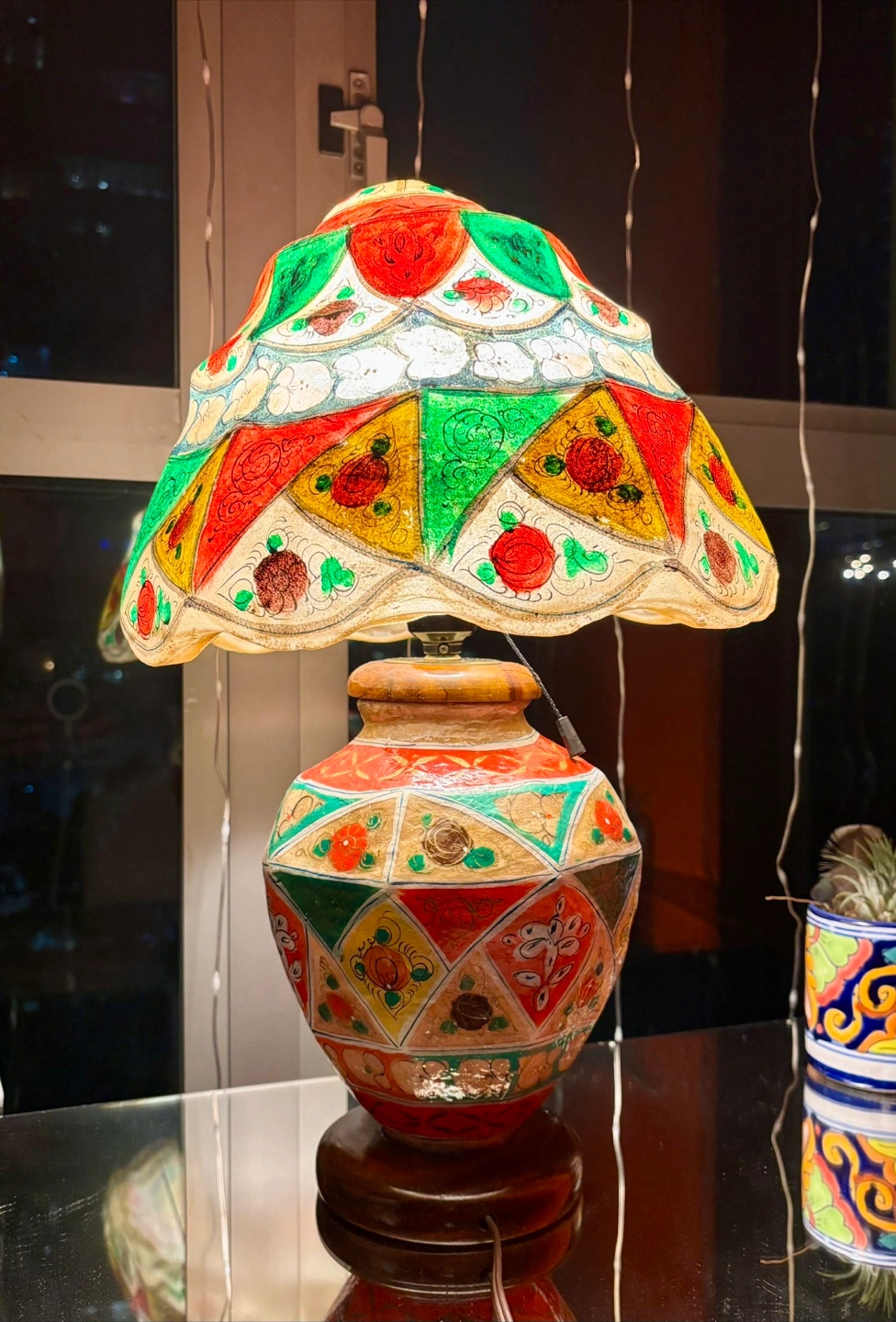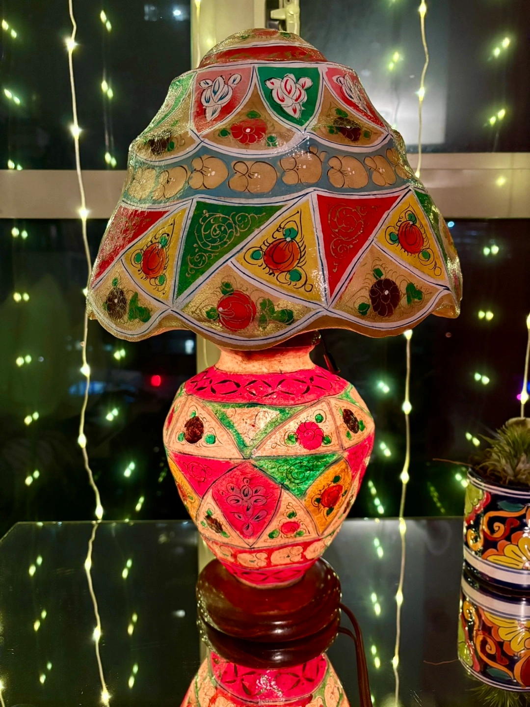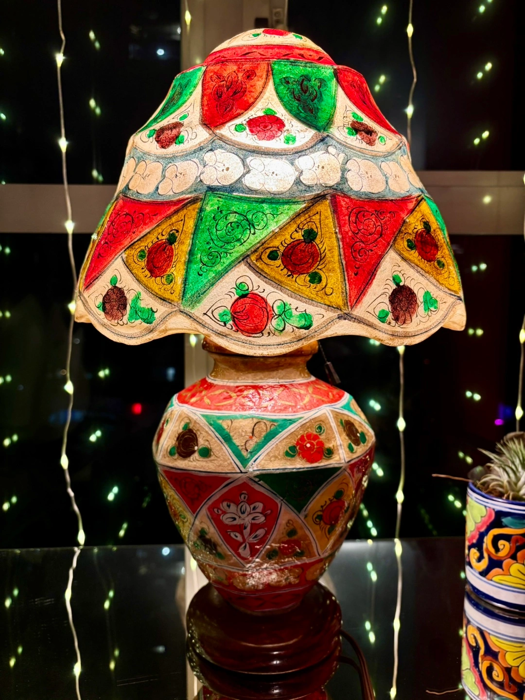 37This is a beautiful, hand-painted table lamp that would add a unique touch to any room. The lamp features a colourful geometric and floral design on both the shade and the base. It's from the 90’s but in great condition and ready to brighten up your space! Pull string two mode lights feature, regular and dimmed. Pick up in Downtown Vancouver. (Yaletown)