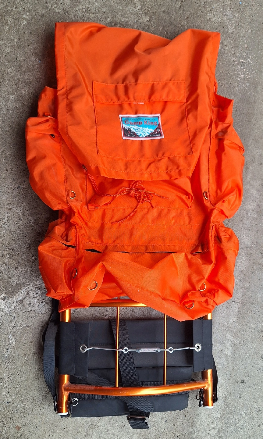 This is a Camp King backpack in orange. It features a magnesium aluminium alloy frame with an anodized finish. Known for quality, this backpack is ready for your next adventure!