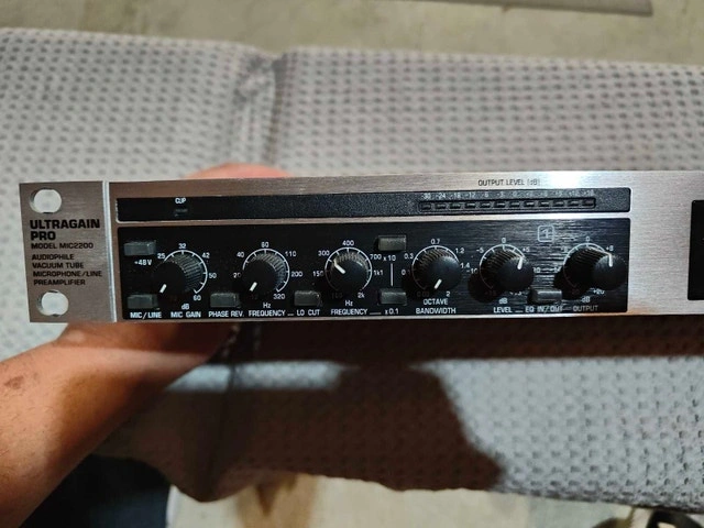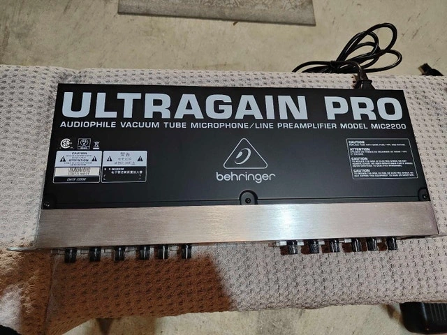 Selling a Behringer Ultragain Pro MIC2200 audiophile vacuum tube microphone/line preamplifier, perfect for enhancing your audio recordings. This unit is in excellent working condition and provides warm, classic tube sound. Features: Audiophile vacuum tube microphone/line preamplifier, High-quality components for pristine audio, Adds warmth and clarity to vocals and instruments. Model: MIC2200. Unit is in excellent condition, barely used. Comes with power cable and owners manual. Asking $100 OBO. If the ad is up, it's still available!