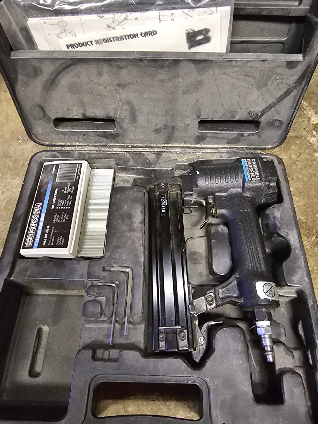 68Selling a Campbell Hausfeld Professional nail gun. It comes with nails and a product registration card. Perfect for your next project!