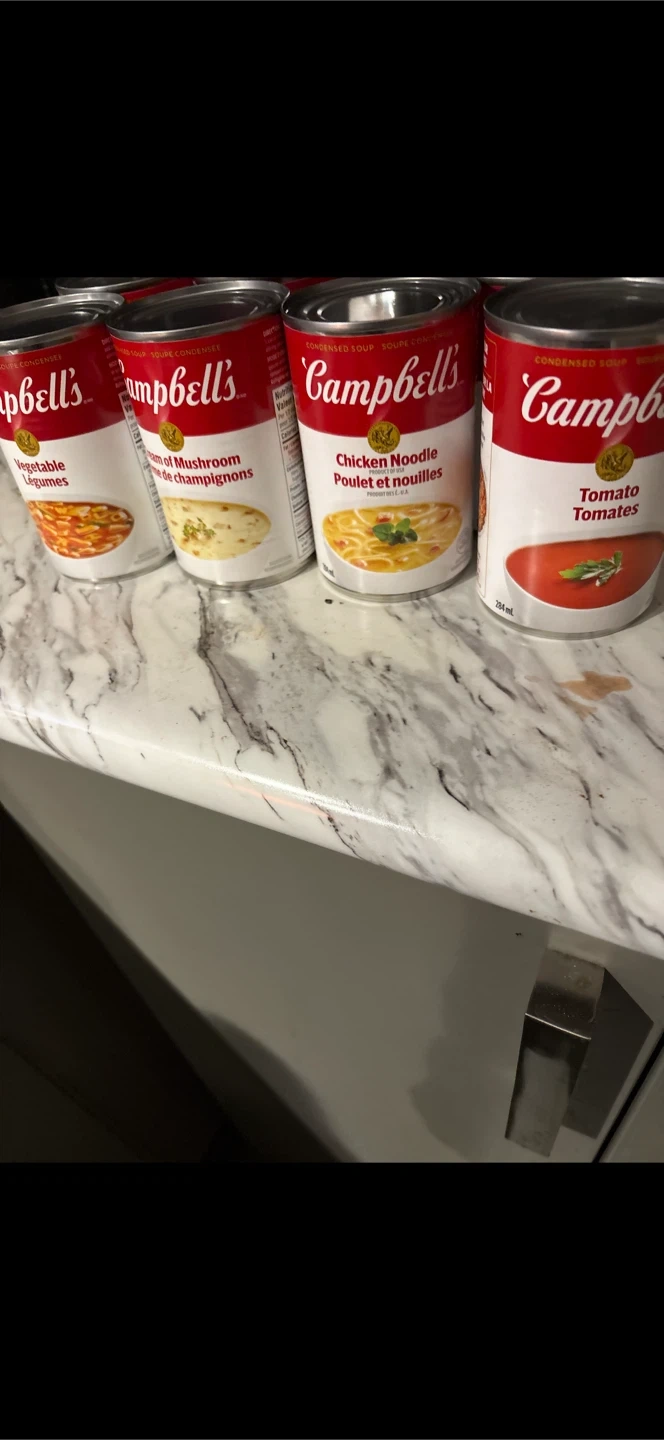 23Selling a variety of Campbell's condensed soups! Includes Vegetable, Cream of Mushroom, Chicken Noodle, and Tomato flavours. Perfect for a quick and easy meal! $1 each