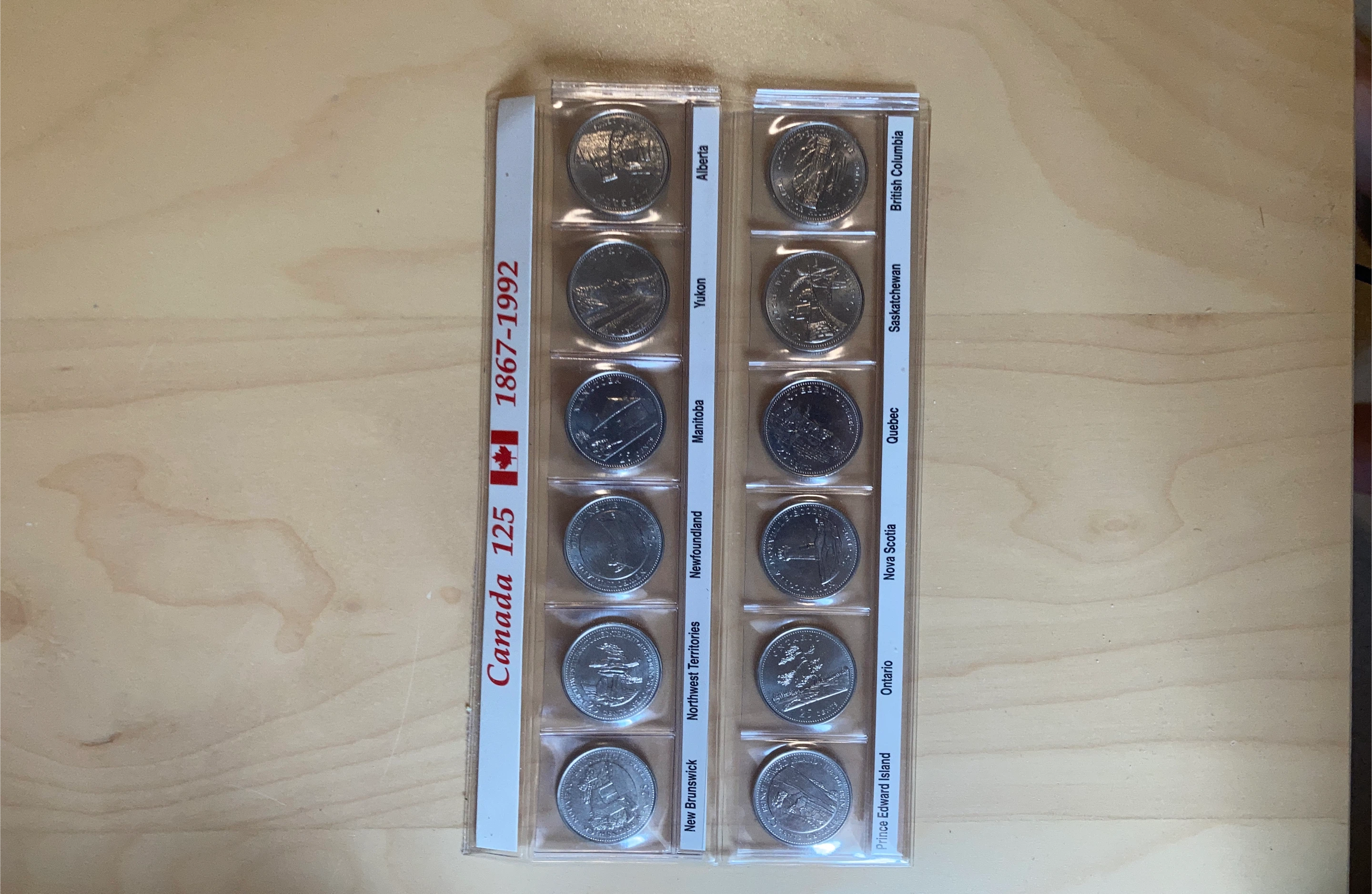 67Price is negotiable Selling a Canada 125 coin collection commemorating 1867-1992. It includes coins representing each province and territory: Alberta, British Columbia, Manitoba, New Brunswick, Newfoundland, Northwest Territories, Nova Scotia, Ontario, Prince Edward Island, Quebec, Saskatchewan, and Yukon