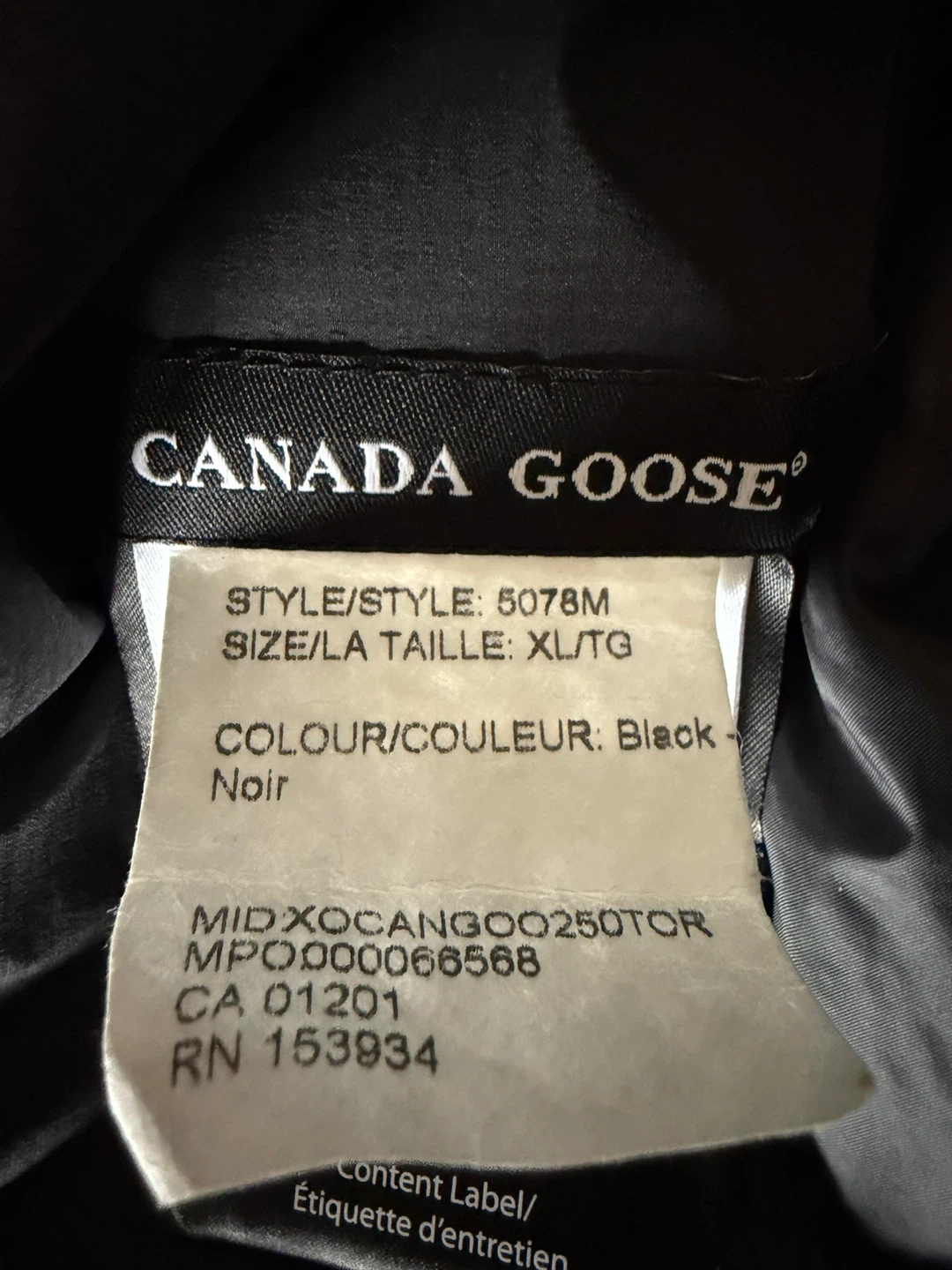 Selling a Canada Goose padded jacket in size XL. The style number is 5078M, and the colour is black. It's in great condition and ready for the colder weather!