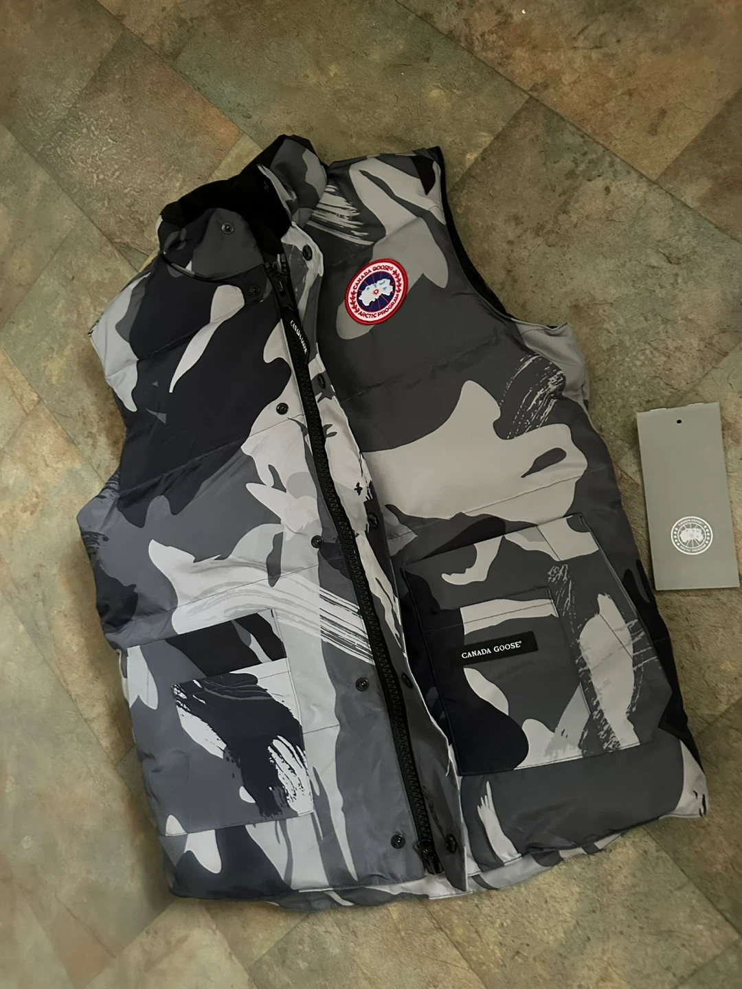 76Selling a Canada Goose padded vest in a stylish camo pattern! It's in excellent condition and ready for a new home. Perfect for adding an extra layer of warmth on chilly days. Comes with the original tag attached