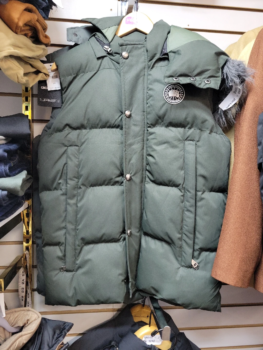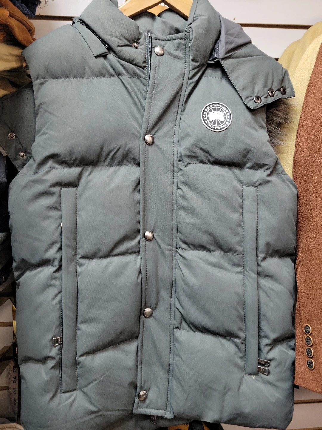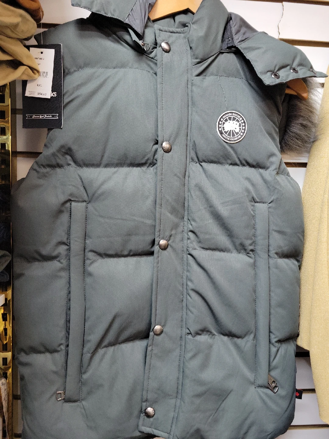 109Selling a Canada Goose down vest with a hood! It's in great condition and perfect for layering. It's a size XXL and features the iconic Canada Goose logo. This vest is sure to keep you warm and stylish! only 3 pieces left youths sizes only available 2 olive green M size 1 dark green M size