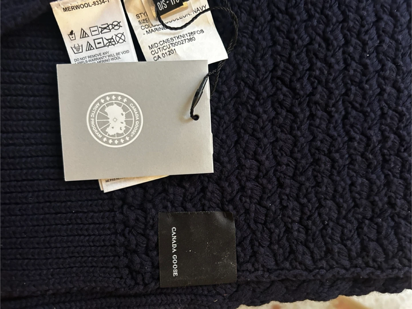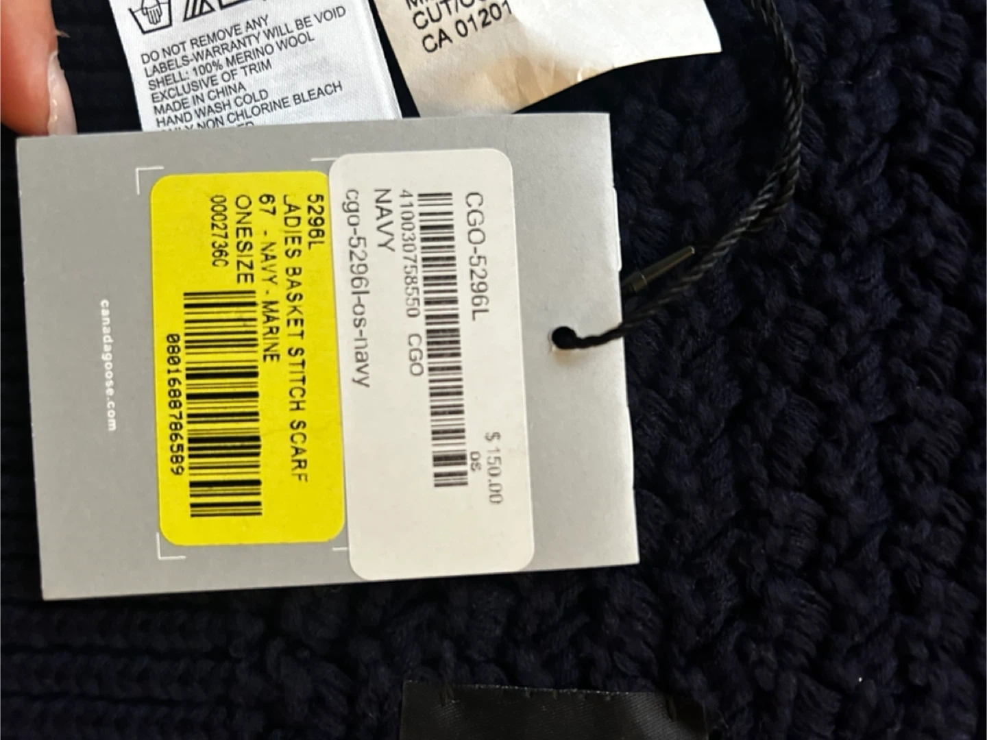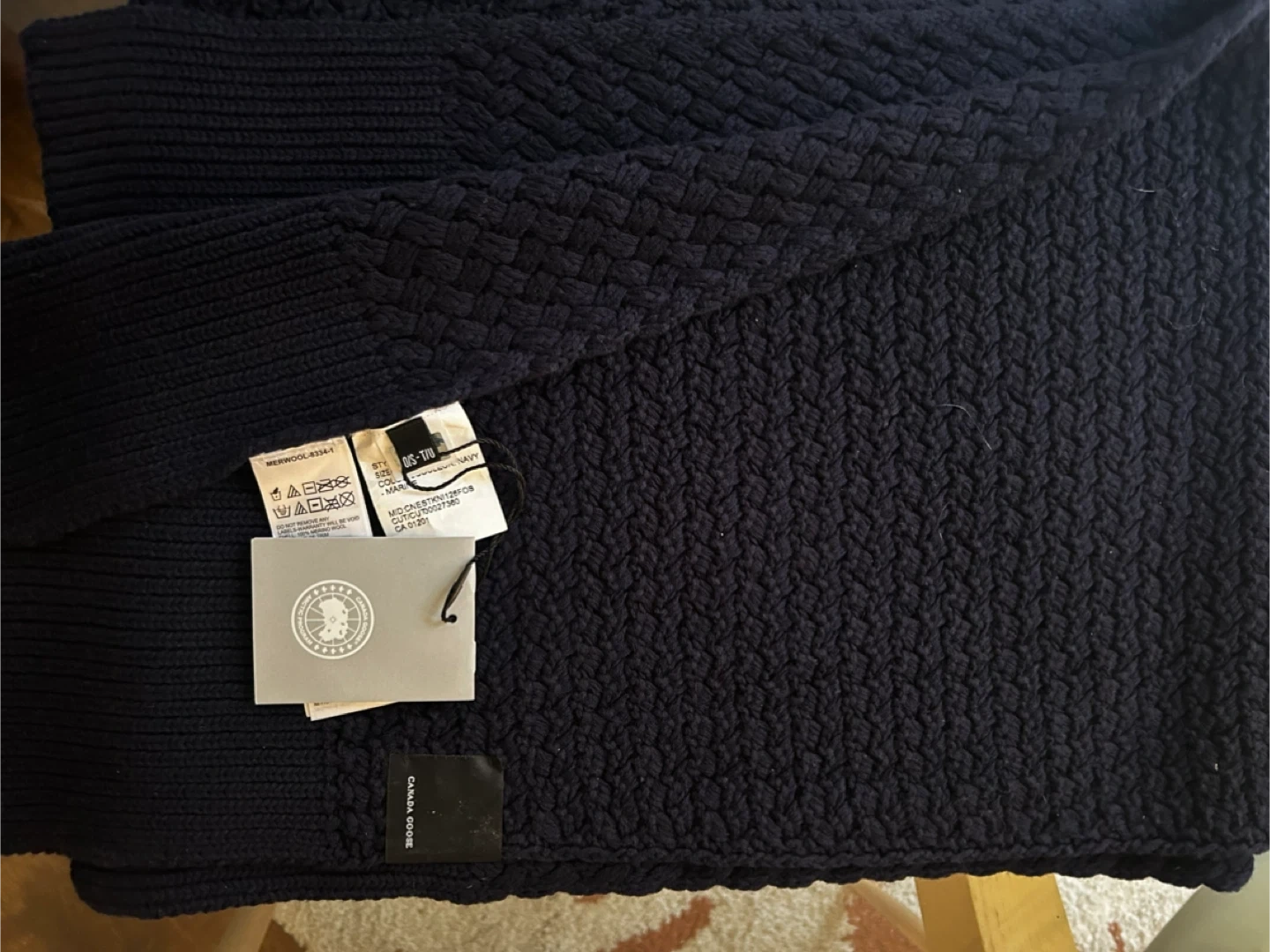 26Selling a Canada Goose Ladies Basket Stitch Scarf in navy. It's Brand New ! Originally bought for $150. It's a stylish and warm accessory for those chilly days