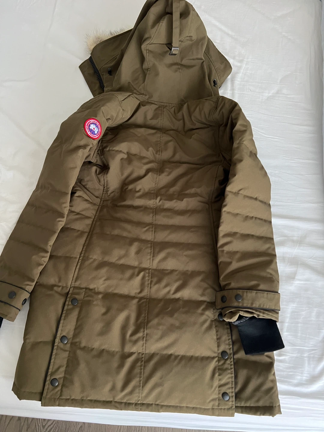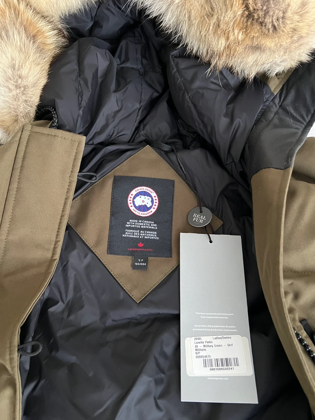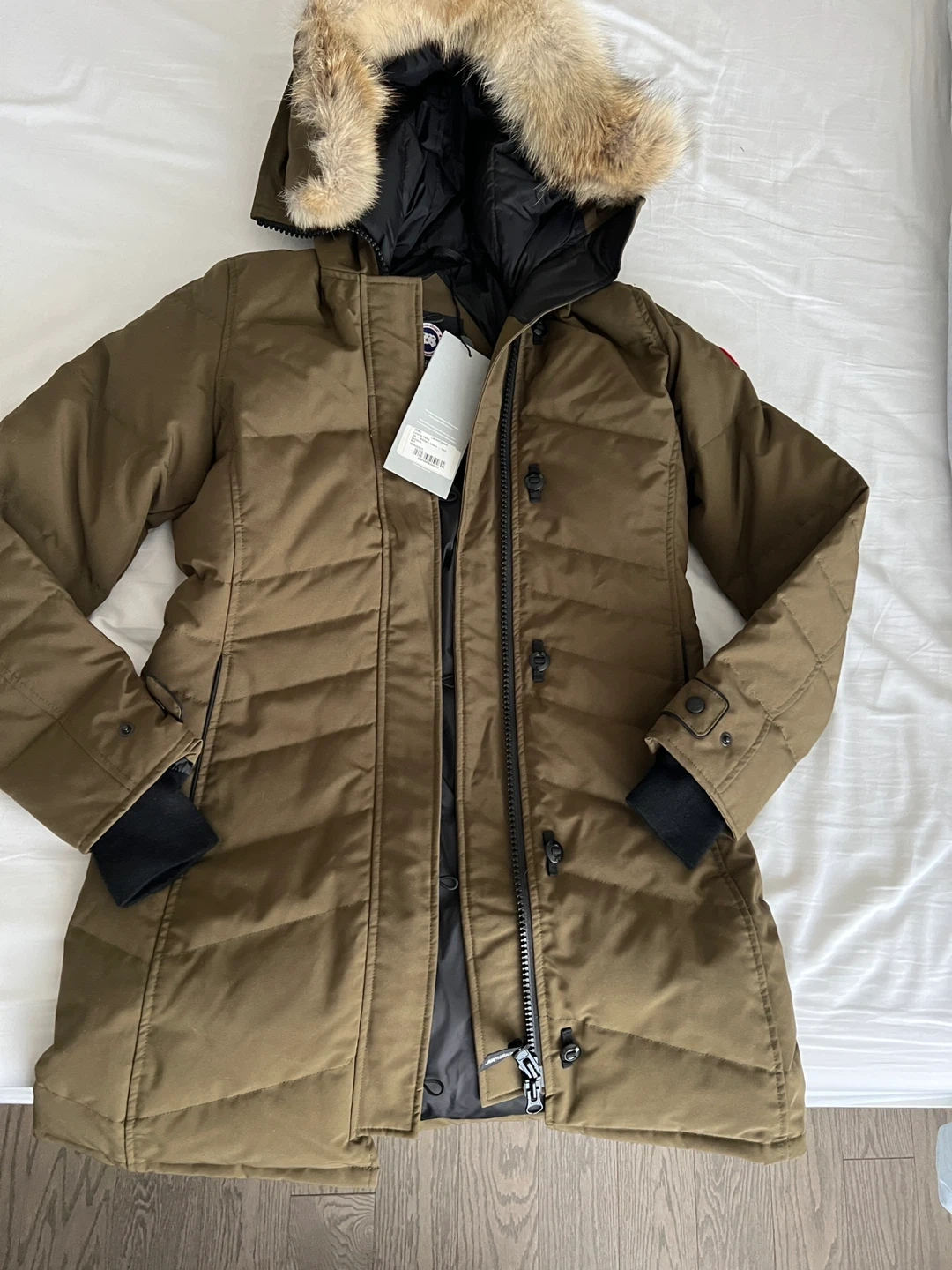 5Selling a brand new Canada Goose Lorelie Parka in a beautiful military green colour! It's a size small (S/P 165/88A). This stylish and warm parka is perfect for the Canadian winter. Don't miss out! Authentic real fur Pick up in Vaughan area