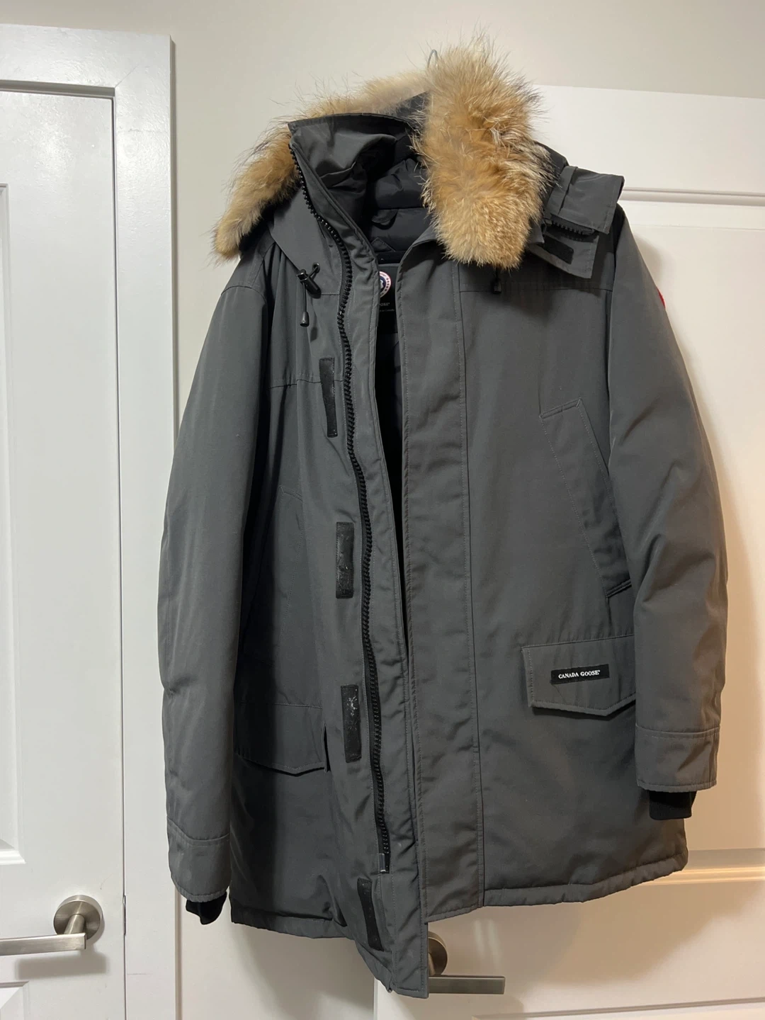 33Selling a Canada Goose parka in size large! It's a stylish and warm jacket in a graphite colour, perfect for the Canadian winter. The jacket is in great condition and ready for a new owner. With natural coyote fur!
