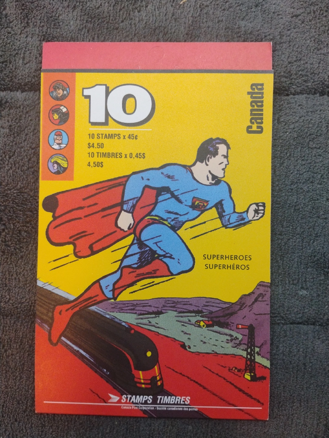 104Selling a set of Canada Post stamps featuring Superman and other superheroes! There are 10 stamps, each valued at 45¢.