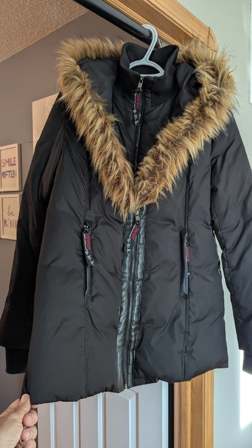60Selling a Canada Weathergear Super Triple Goose jacket in size M/M. It's a stylish and warm winter coat with a faux fur-trimmed hood.