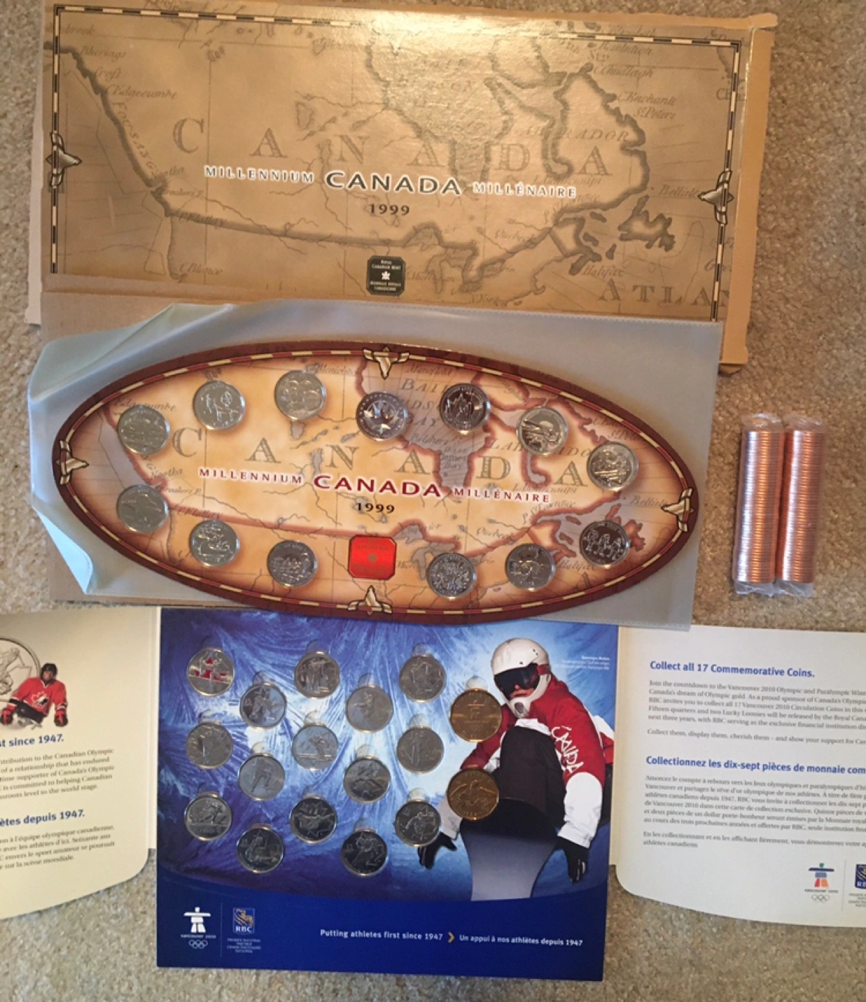 I'm selling a 1999 Millennium Canada coin set, a 2010 Vancouver Olympic coin set, and two rolls of uncirculated 2012 Canadian pennies. $25 for all!! Thanks and please see my other ads!