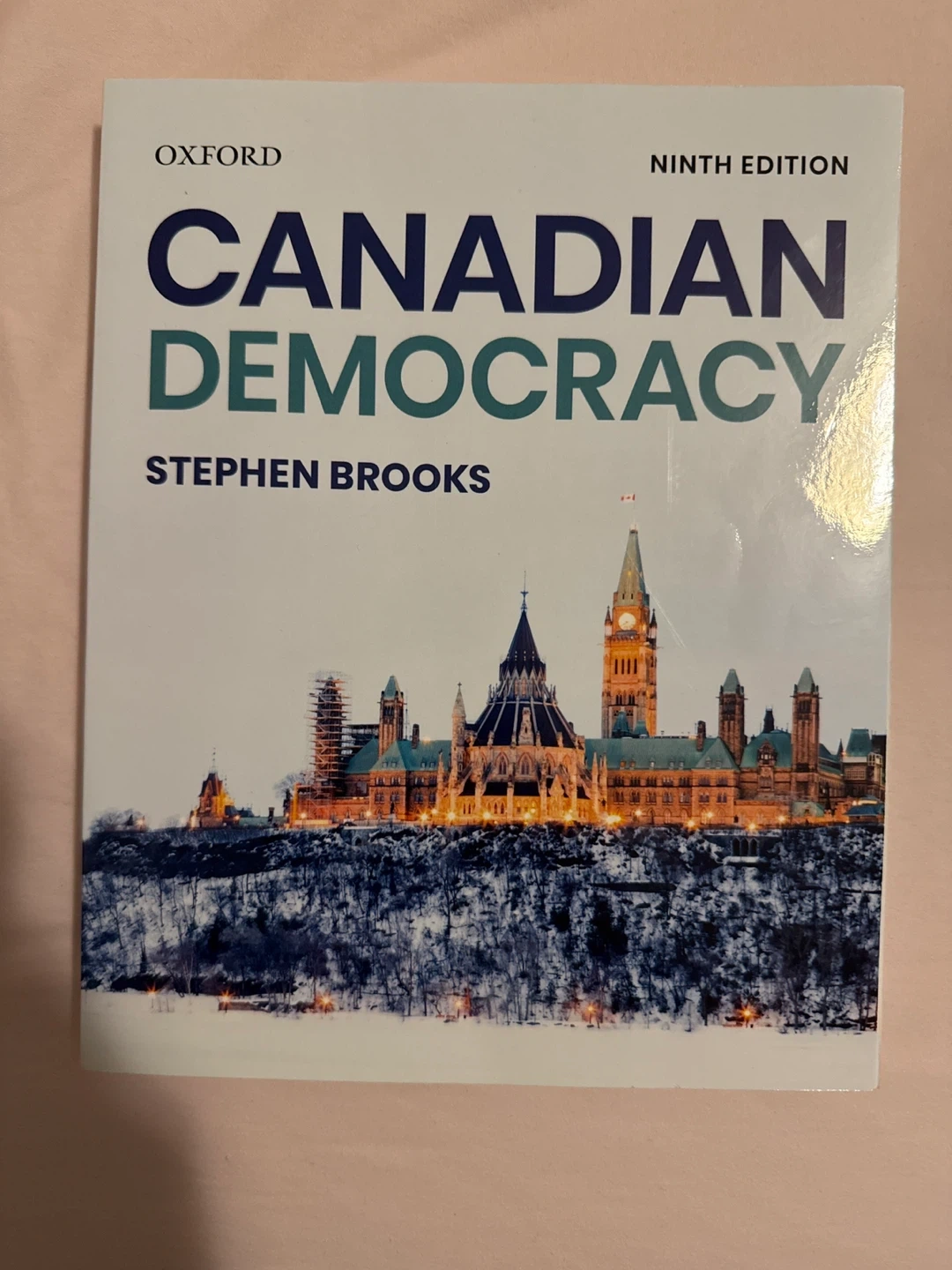 10Selling a copy of Canadian Democracy by Stephen Brooks, Ninth Edition. It's in great condition and ready for a new home!