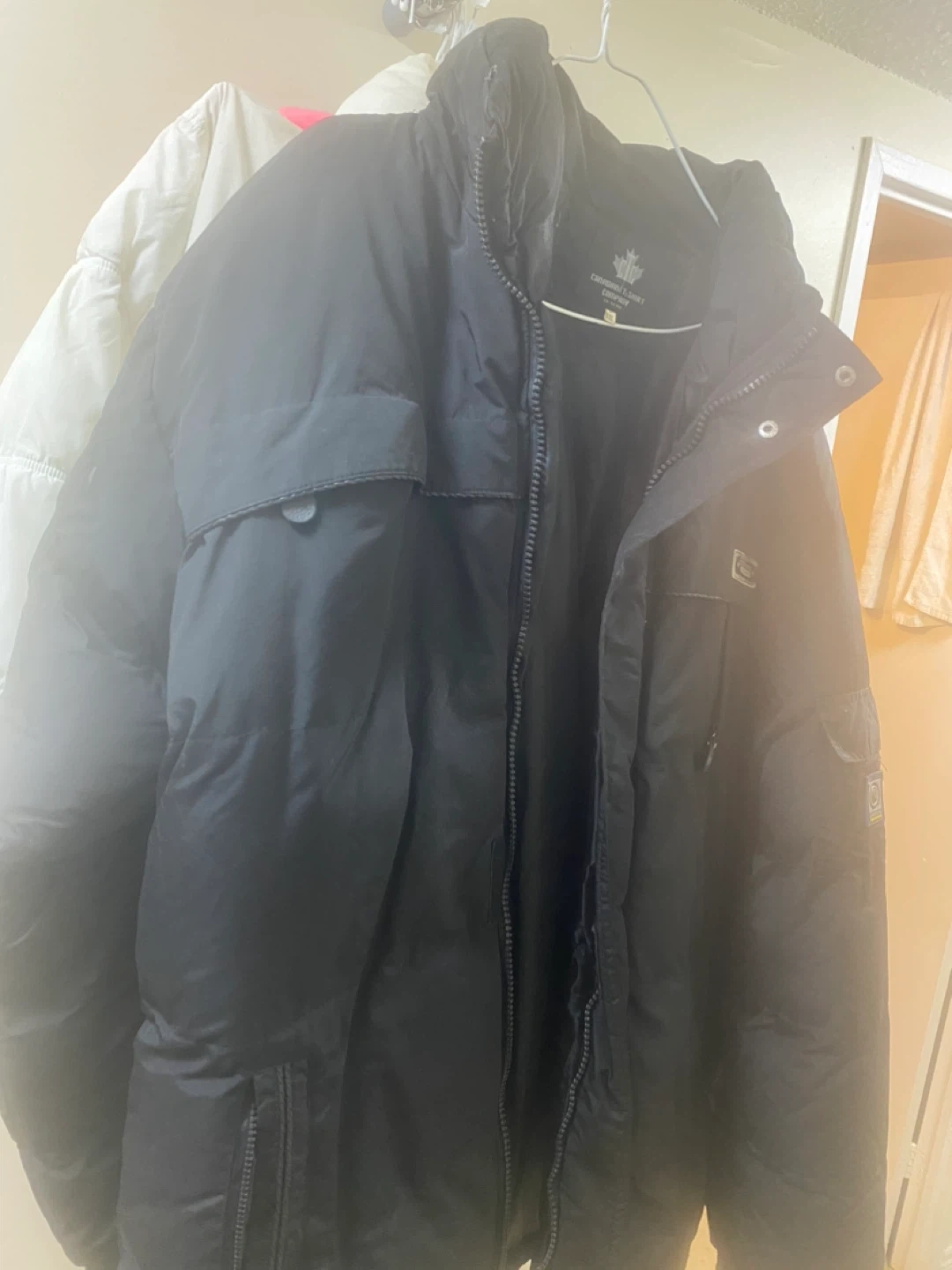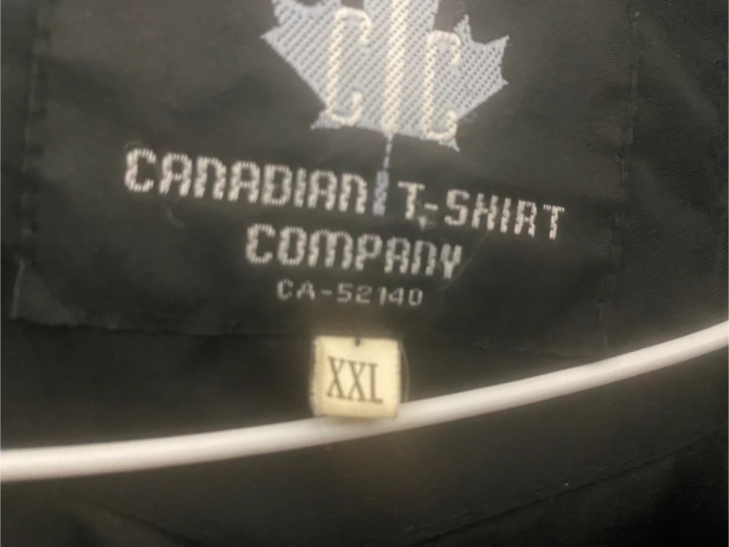161Selling a black winter jacket from Canadian T-shirt Company, size XXL. It's in good condition and ready to keep you warm this winter!