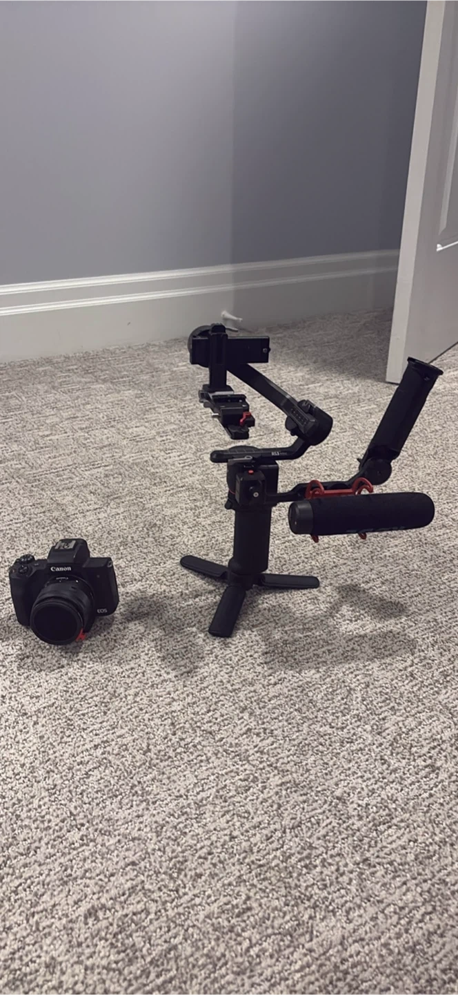 5will not sell anything separately! what’s included- -dji rs3 mini with vertical and horizontal mounts -tripod grip -neewer briefcase handle -rode video go mic - dji box - neewer adjustable ND filter - Cannon M50 - battery + charger - camera bag low balls will be ignored. try your trades, interested in an osmo pocket 3 or 03-06 silverado parts
