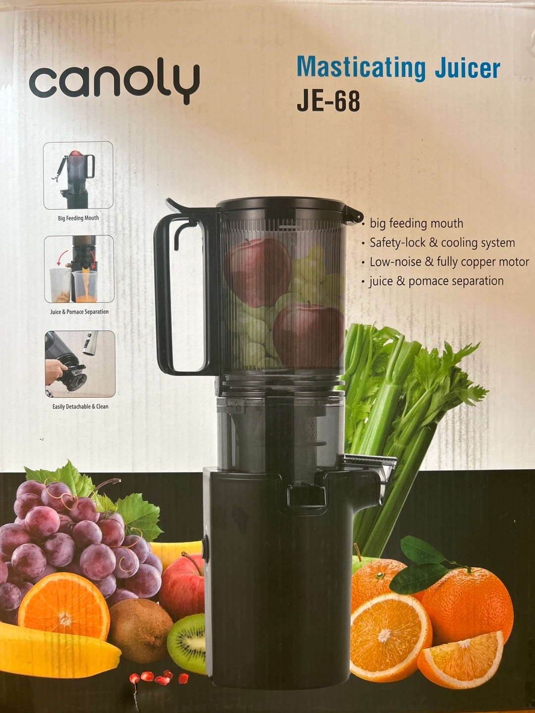Powerful masticating juicer. Low-noise motor. Big feeding mouth. Easy to clean. BPA free materials. Includes cord and all parts. With original packaging, used twice - great condition. I’m just not a juice person😂🍎🥕 **Amazing purchase price $120