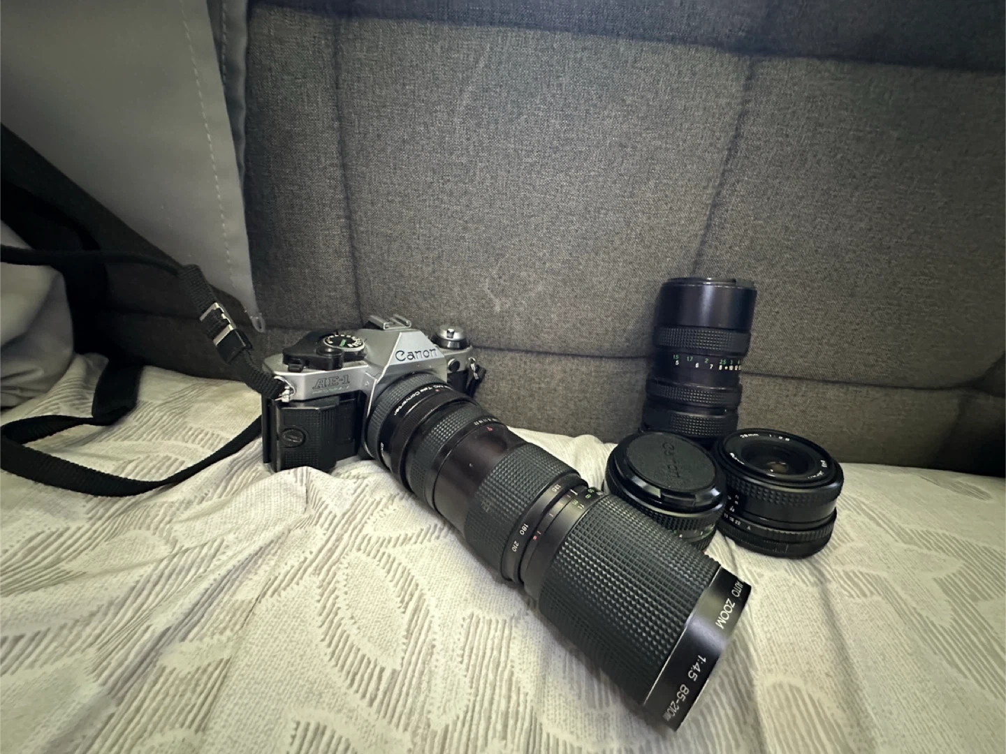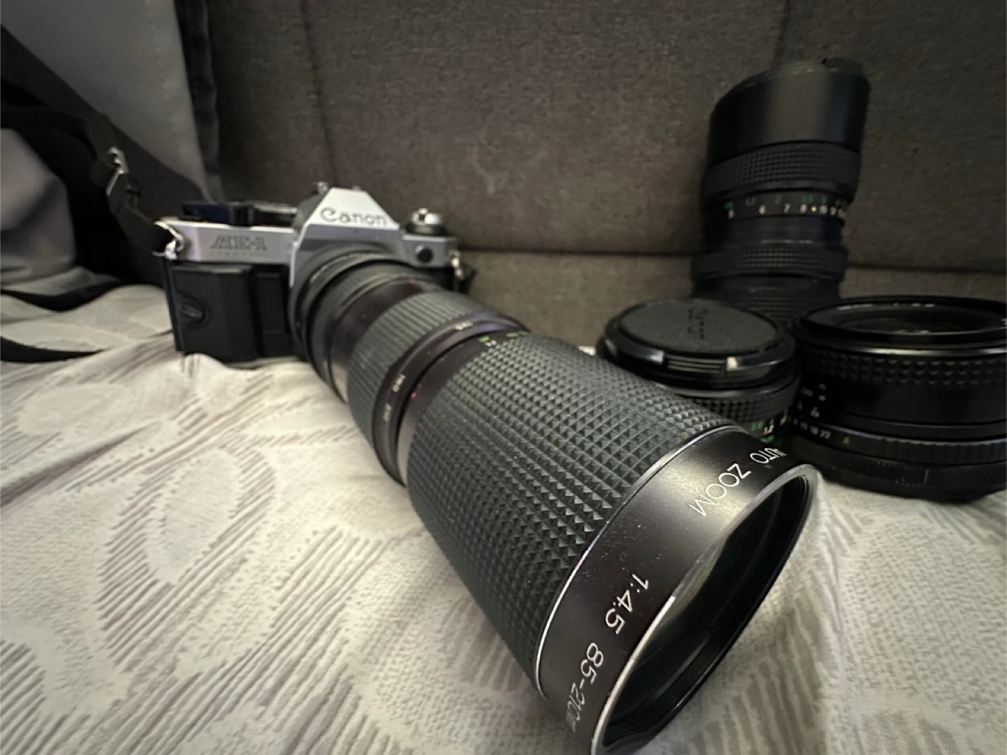 Selling a Canon AE-1 film camera body along with a Canon 85-200mm 1:4.5 zoom lens. Also includes a Tokina 28mm lens. Great for film photography enthusiasts!