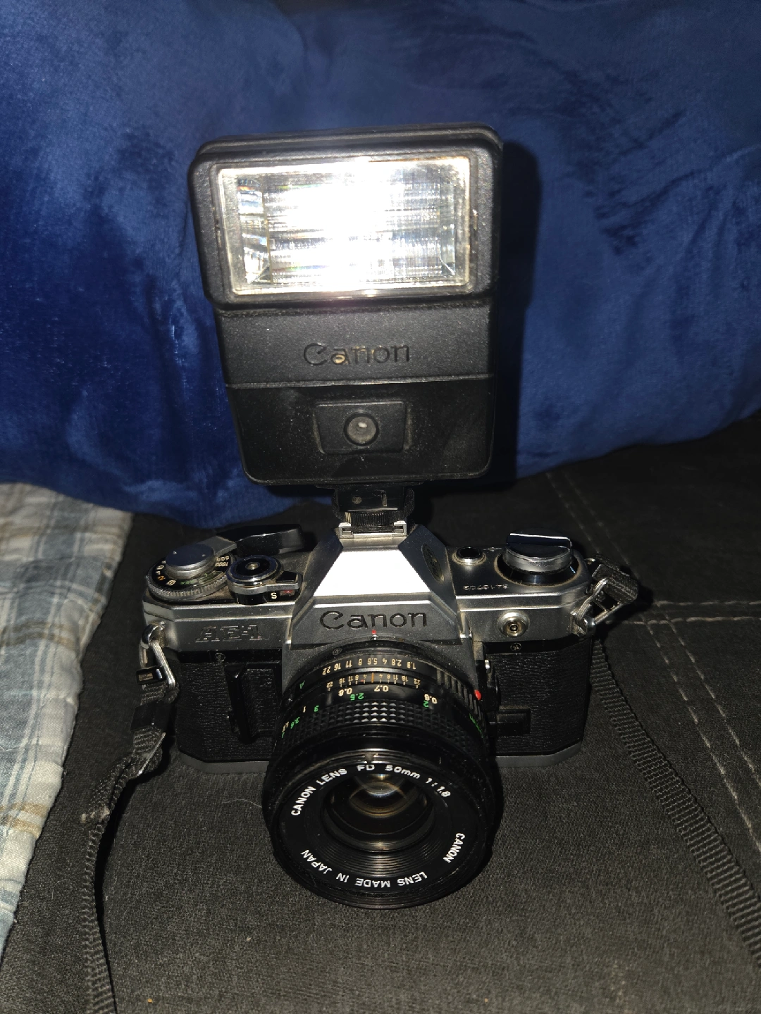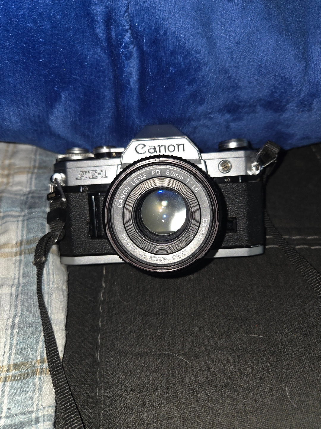 Selling a Canon AE-1 film camera. It comes with a FD 50mm 1:1.8 lens. Great for anyone interested in film photography! It also includes a flash.