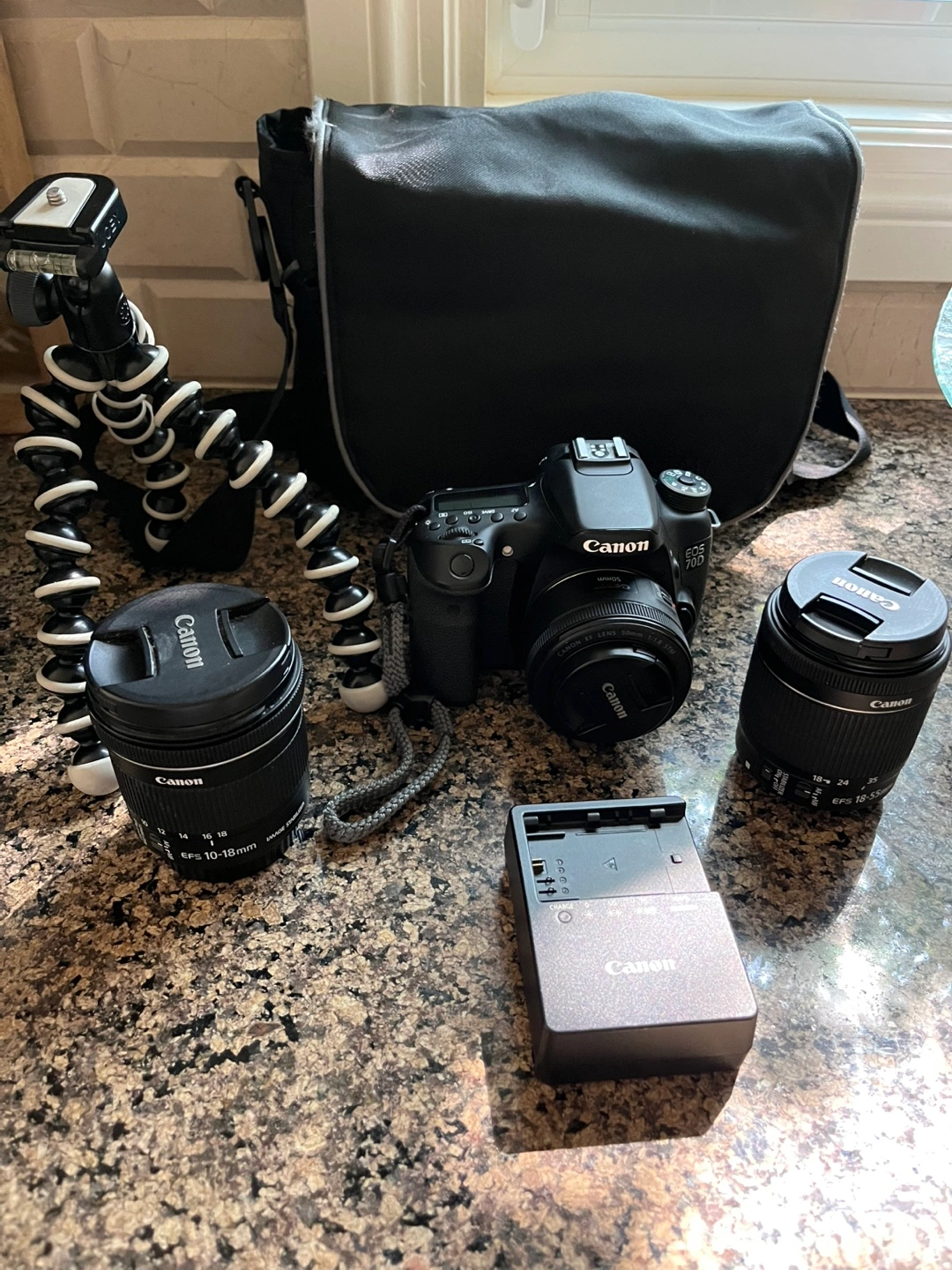 Canon EOS 70D DSLR Bundle – Excellent Condition | Complete Photography Kit Selling a gently used Canon EOS 70D DSLR camera in like-new condition, perfect for beginners, hobbyists, or content creators. This is a full photography bundle — just charge the battery and you’re ready to shoot! ✅ What’s Included: • Canon EOS 70D DSLR Body (with original cap) • Canon EF 50mm f/1.8 STM Lens (ideal for portraits and low light) • Canon EF-S 18-55mm f/3.5–5.6 IS II Lens (great everyday zoom) • Canon EF-S 10-18mm f/4.5–5.6 IS STM Lens (ultra wide for landscapes & vlogs) • Canon Battery & Charger • Flexible Tripod • Canon Shoulder Camera Bag NO REFUNDS - SERIOUS INQUIRIES ONLY