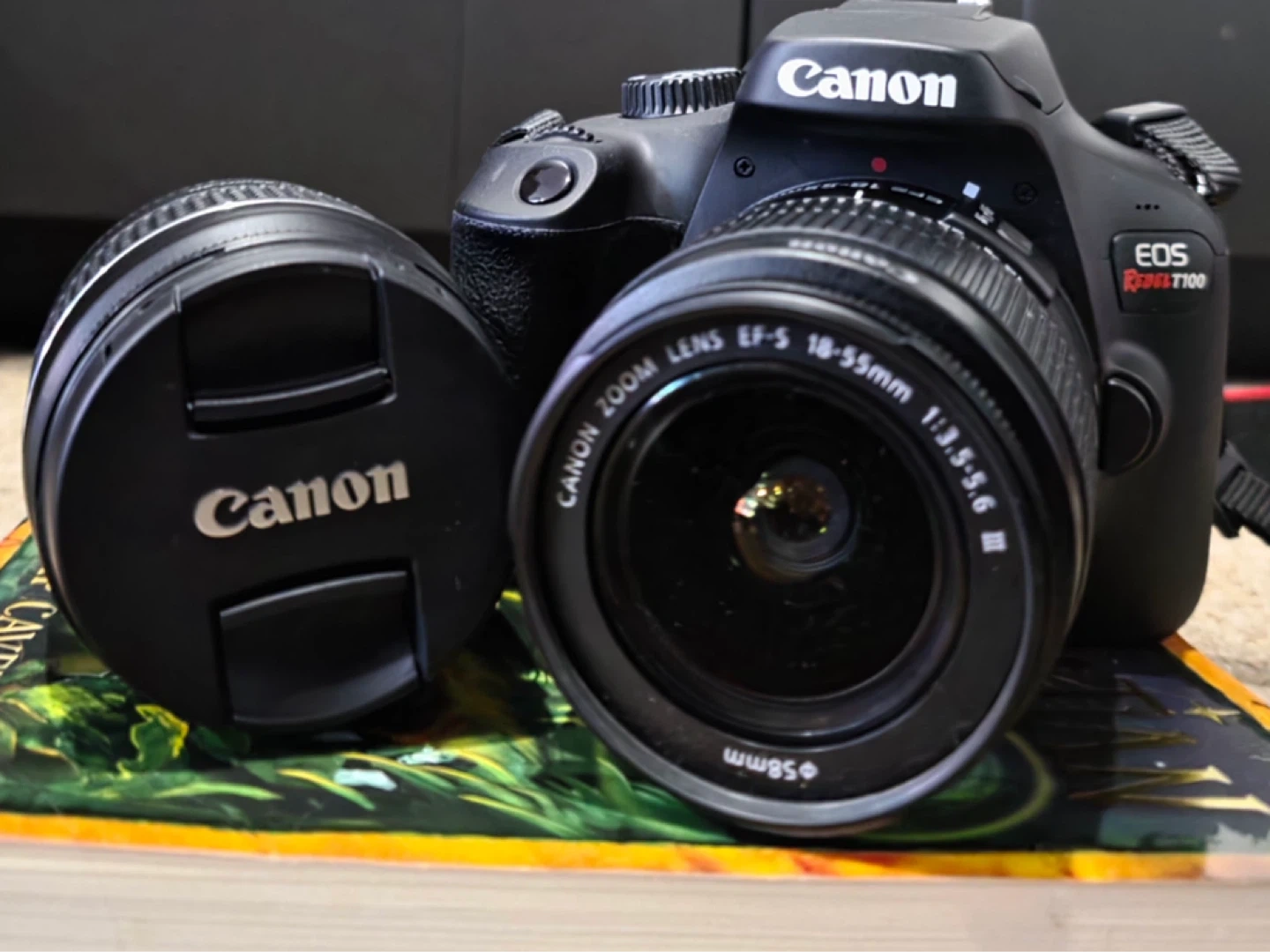 60Selling a Canon EOS Rebel T100 DSLR camera. It's in great condition and ready for a new home! Comes with an 18-55mm lens, lens cap, and camera strap. Also included are some ZIZ Tech accessories. (bag included, battery, and a camera card)