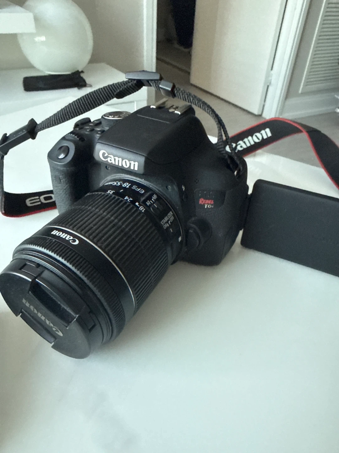Selling a Canon EOS Rebel T6 digital camera. It comes with: - Canon battery pack charger - Kingston 32GB SD card - Camera strap