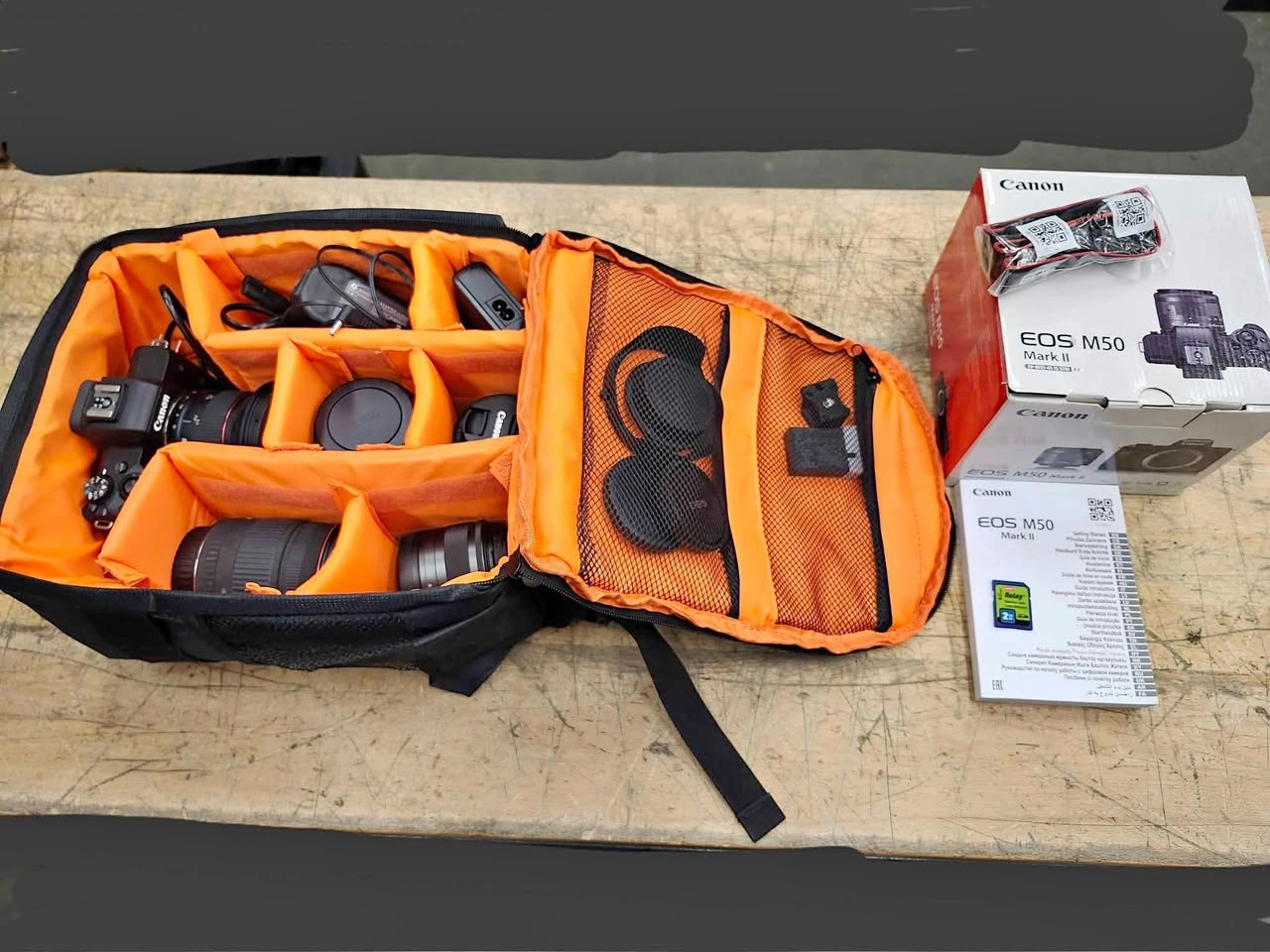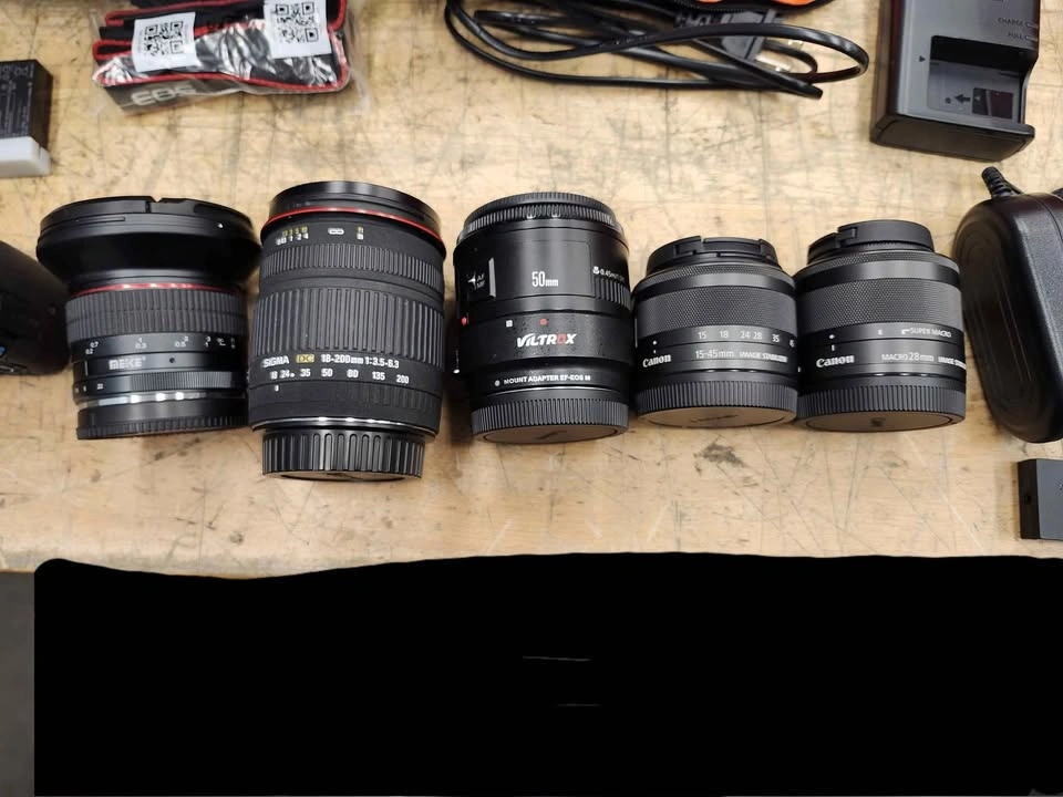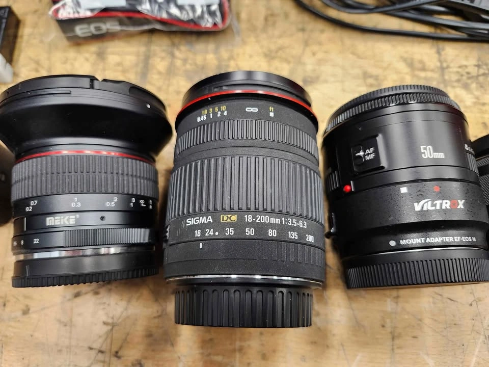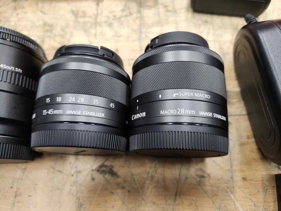 10Canon M50 Mark II camera, like new, with extra lenses, case, and adapter for plugging into wall. Also includes 2gb memory. Only used for live streaming indoors, so it's never been outside. See pics for lenses included.
