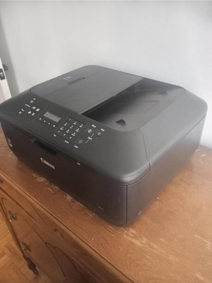 Selling a Canon MX472 all-in-one printer. It's in good condition and ready to go! This printer can handle all your printing, scanning, and copying needs. It's a reliable and versatile machine for home or office use