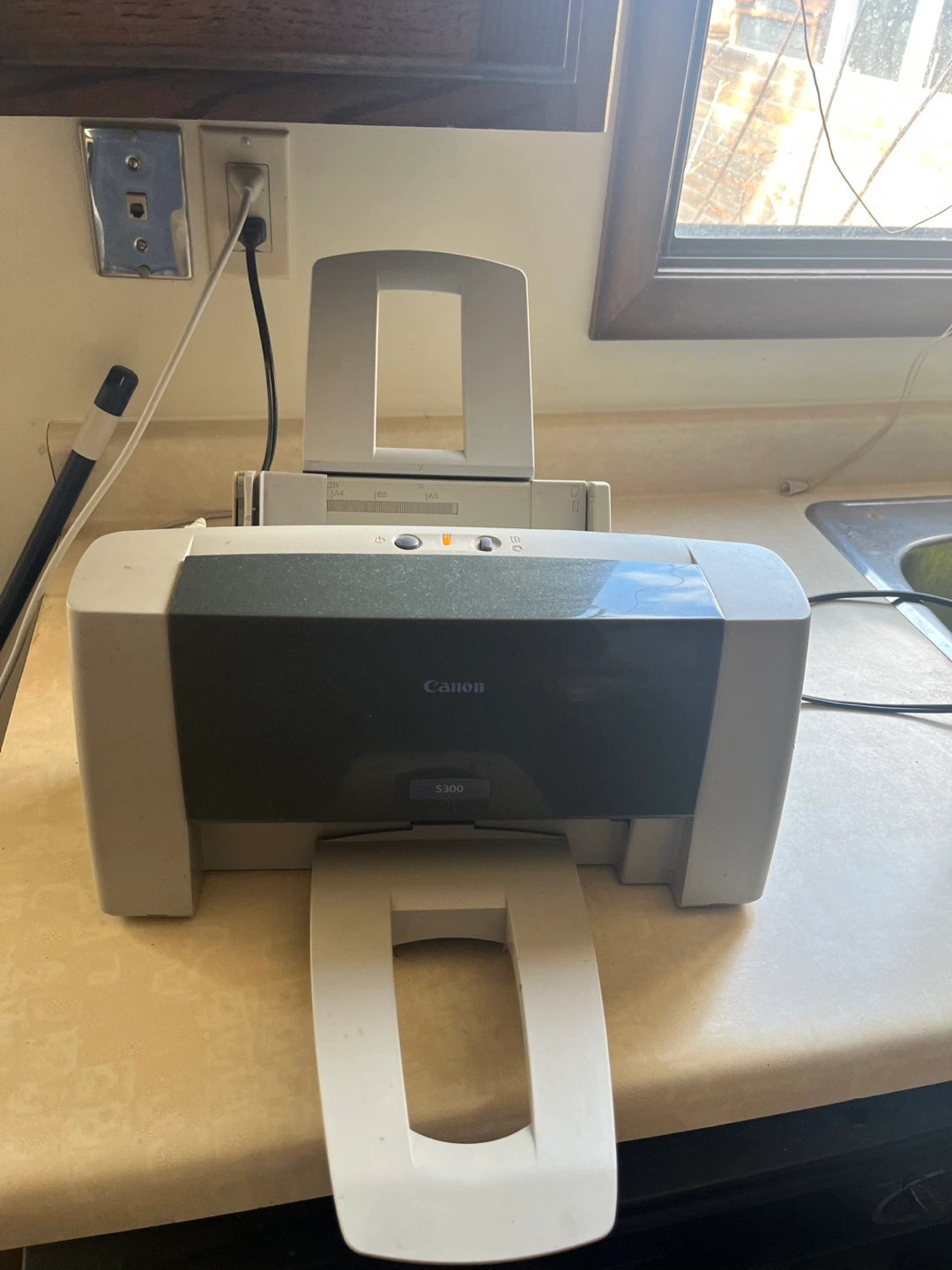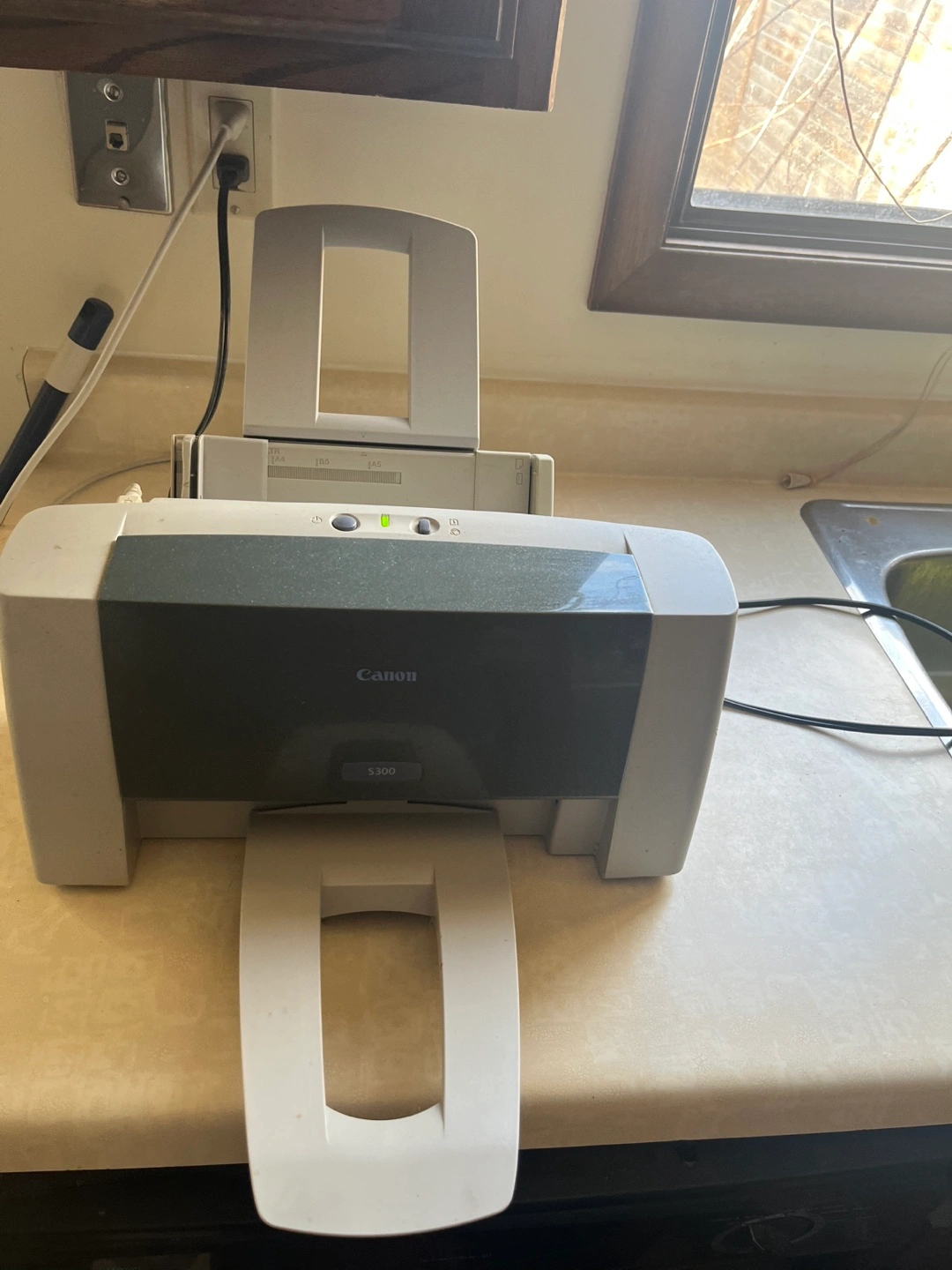 Canon Pixma S300 inkjet printer. Includes power cord. Used but in good condition. Automatic document feeder. No box or manual available