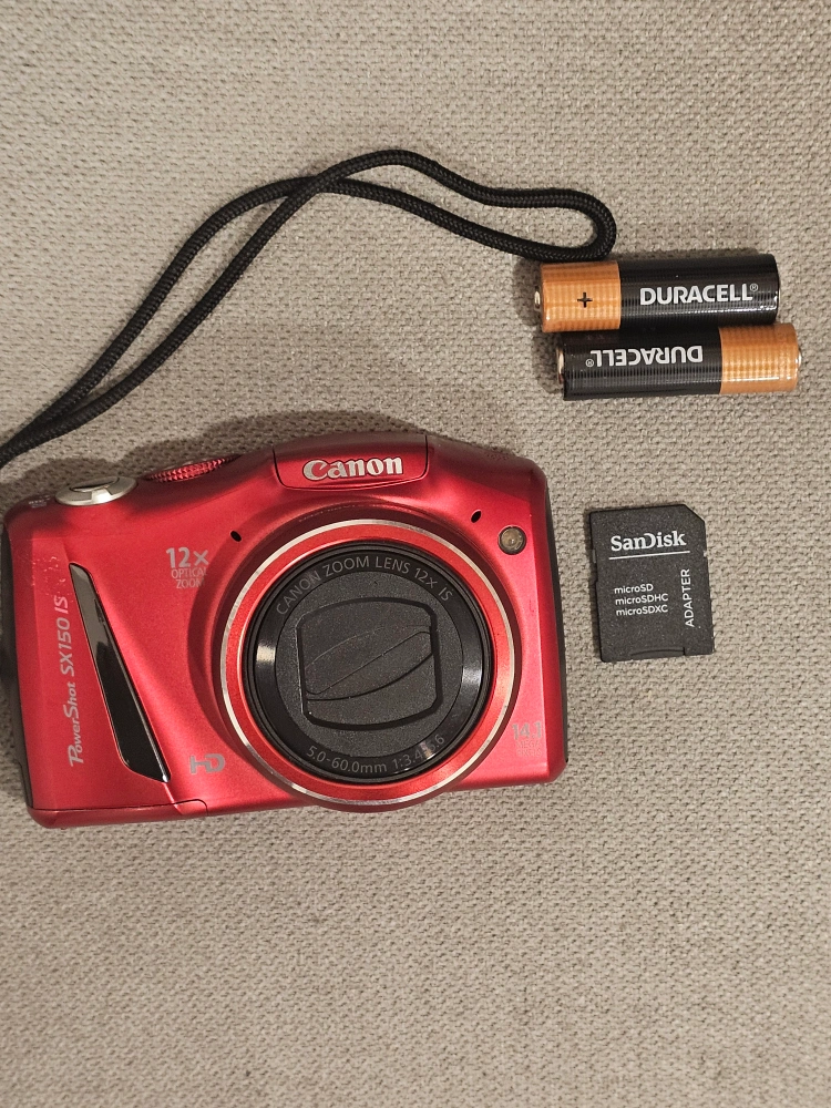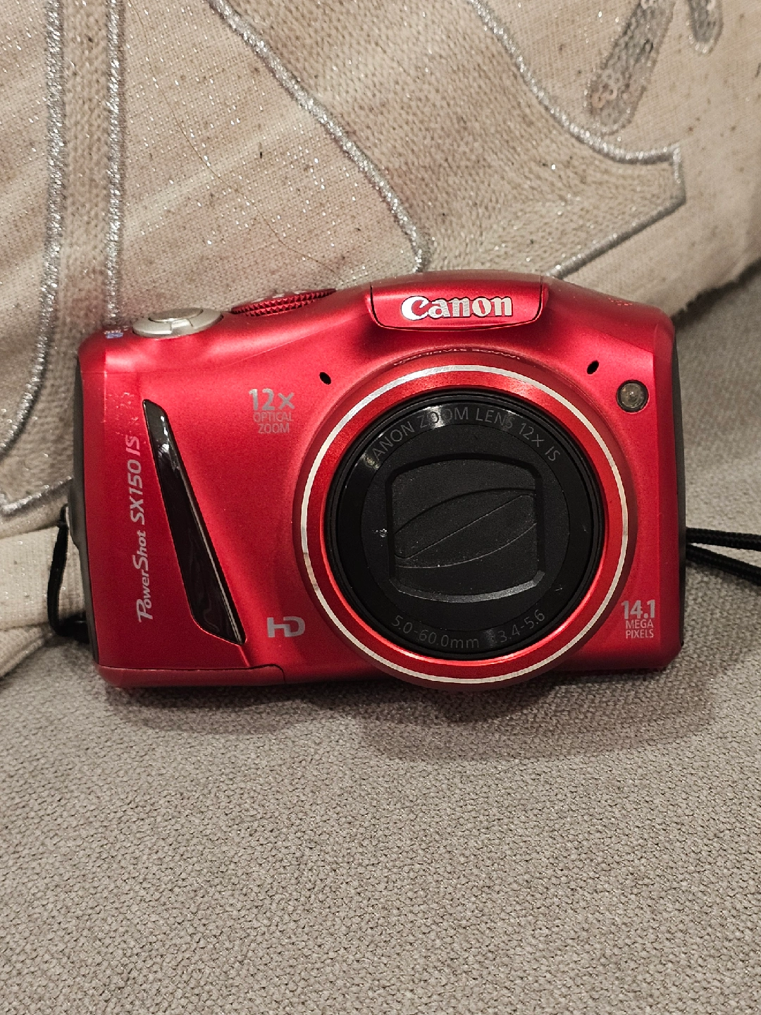 Selling a red Canon PowerShot SX150 IS digital camera. It has a 12x optical zoom and captures 14.1 mega pixels. It's in great condition and ready for its next adventure!. CHECK MY OTHER LISTING TOO