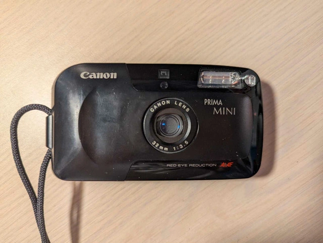 50This compact Canon Prima Mini 35mm point-and-shoot film camera, also known as the Autoboy F or Sure Shot Sleek, is in good working condition. It's perfect for capturing memories with its sharp 32mm f/3.5 lens and automatic features. Being a used camera, it has some cosmetic wear, but it functions flawlessly. * Lens: 32mm f/3.5 * Film Format: 35mm * Automatic Exposure * Built-in Flash