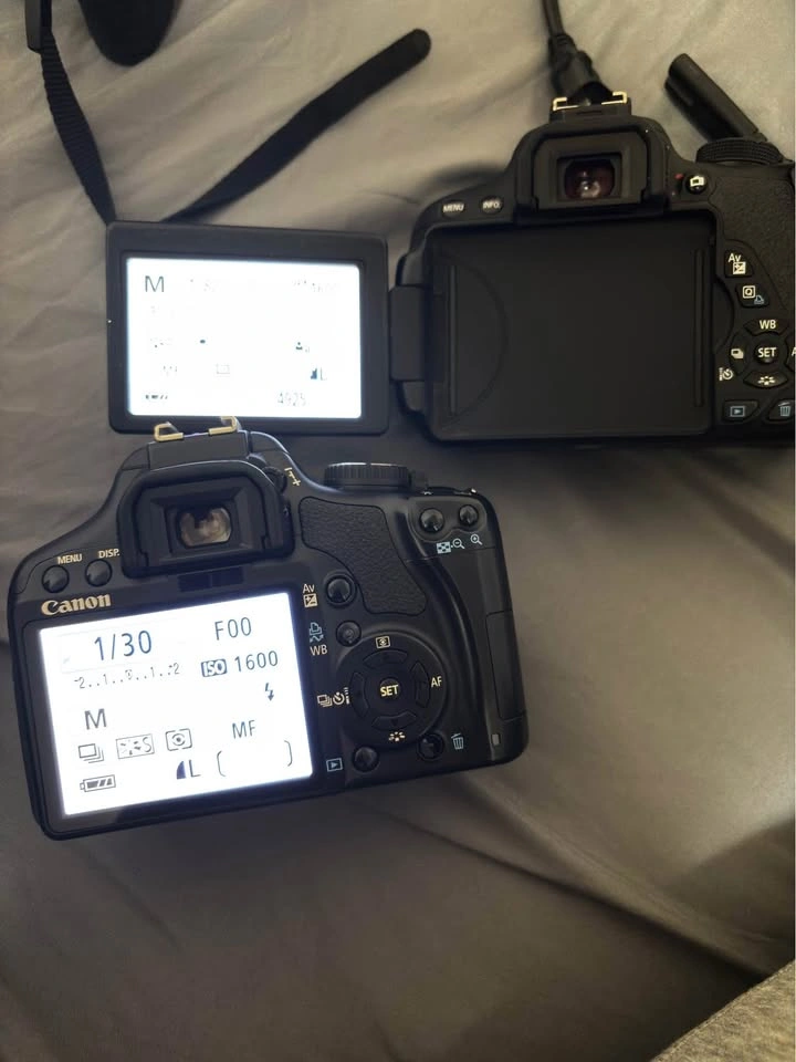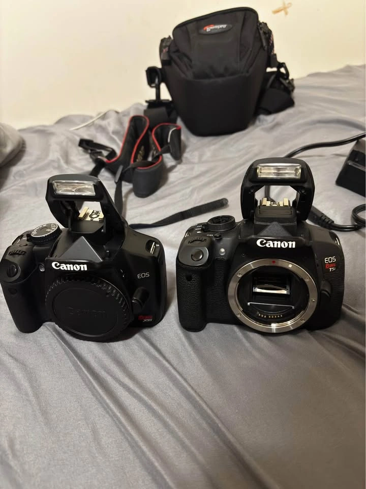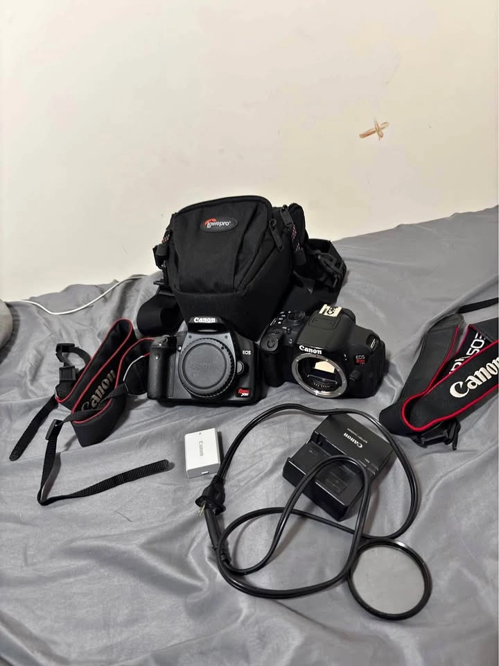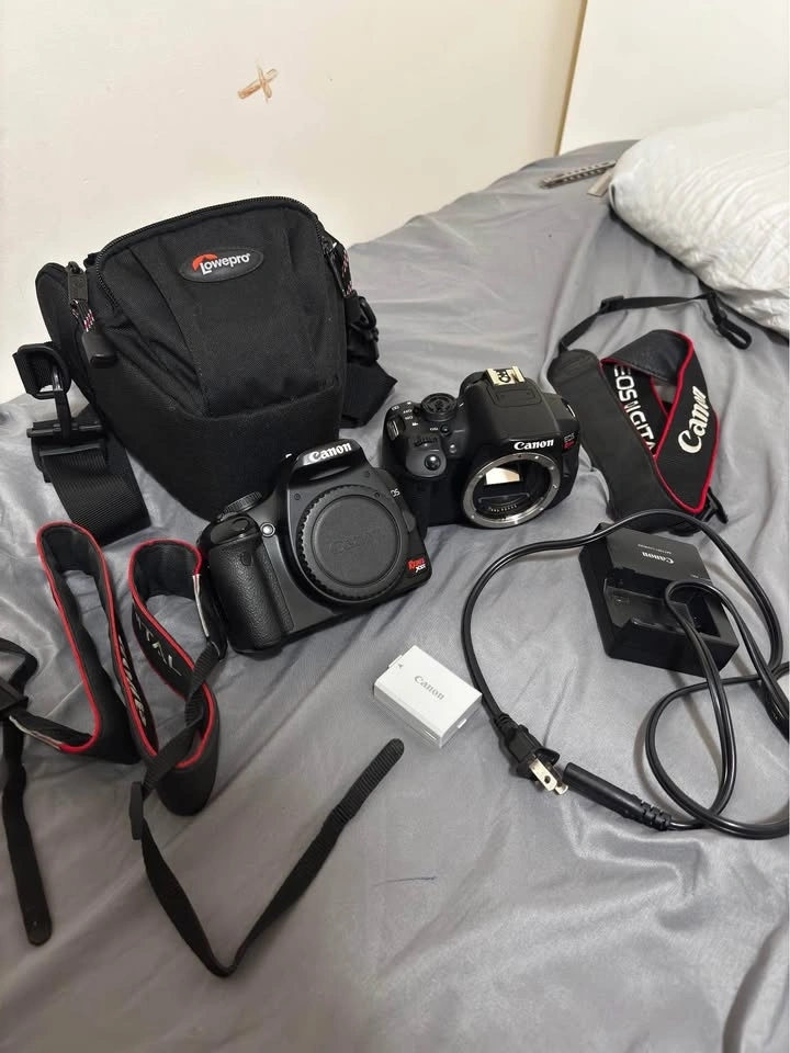 16Both are new. Comes with 18-125mm lense, lense protector, 3 batteries, 2 chargers, two straps, and a bag.